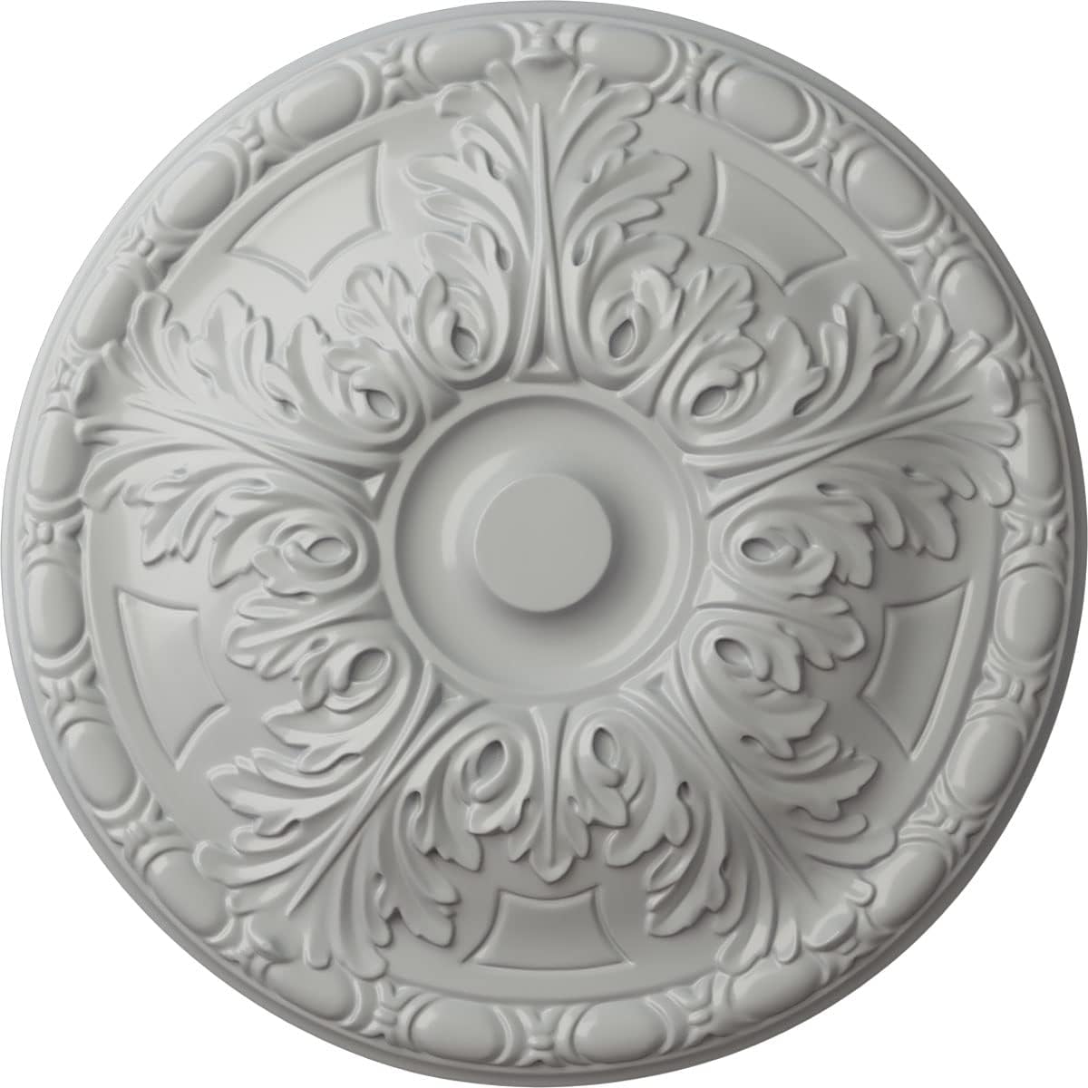 Our ceiling medallion collections are modeled after original historical patterns and designs. Our artisans then hand carve an original piece. Being hand carved each piece is richly detailed with deep relief, sharp lines, and a truly unique touch. That master piece is then used to create a mould master. Once the mould master is created we use our high density urethane foam to form each medallion. The finished look is a beautifully detailed, light weight, solid construction, focal piece. The resemblance to original plaster medallions is achieved only by using our high density urethane and not vacuum formed, "plastic" type medallions. - Medallions can be cut using standard woodworking tools to add a hole for electrical or a ceiling fan canopy. - Medallions are light weight for easy installation. - They are fully primed and ready for your paint. If you have any questions feel free to ask. These are in stock and available for immediate shipment.