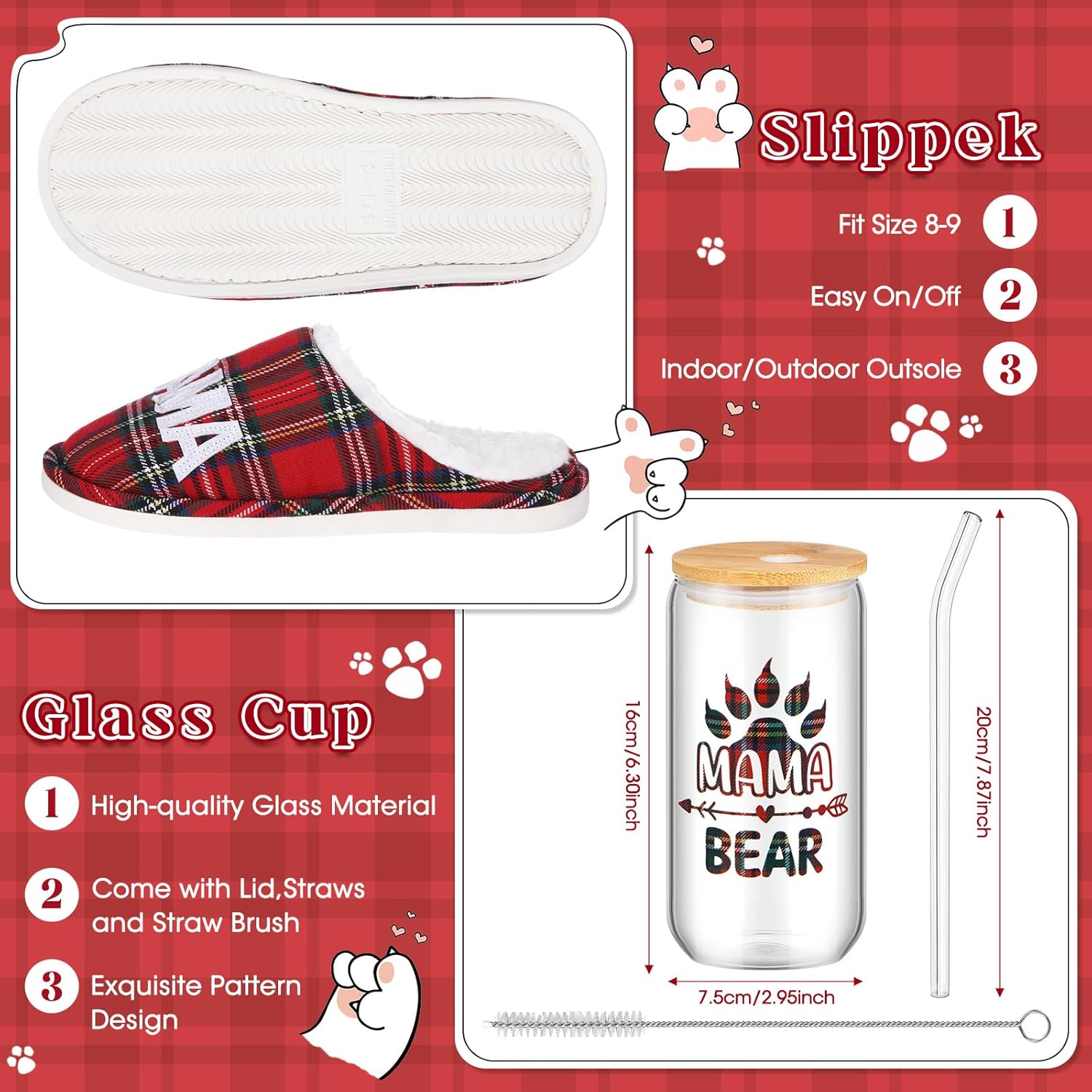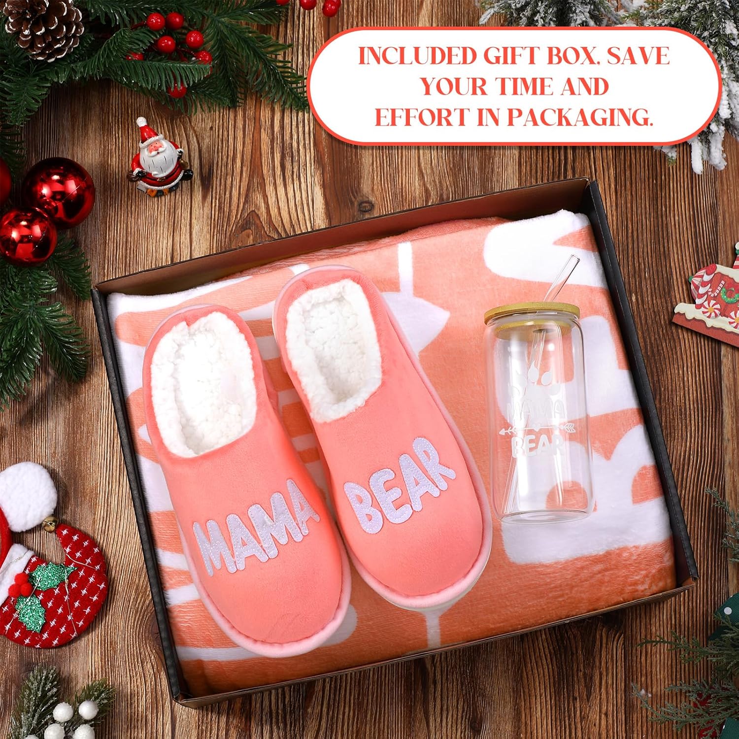 Features: Gift box set: Our gift set comes with a gift box, which is the right size, exquisite and sturdy, and does not need repackaging, saving you a lot of time and effort in preparing gifts. Mama bear theme: Our products are designed with the lovely Mama bear theme, creatively designed prints, exquisite workmanship, not easy to fade or damage. Specifications: Material: flannel, sherpa, glass Color: red, black,pink,gray Blanket Size: approx. 71 x 59 inches Slipper Size: 7-8,8-9,9-10 Tumbler capacity: 16 oz Package includes: 1 x Wearable blanket 1 Pair of slippers 1 x Glass cup with lid and straw 1 x Gift box Notes: Manual measurement, please allow slight errors on size. The color may exist a slight difference due to different screen displays. The words on the product are only applied as decorations, not as trademarks or brand names. Our Trademark is Glitopper.