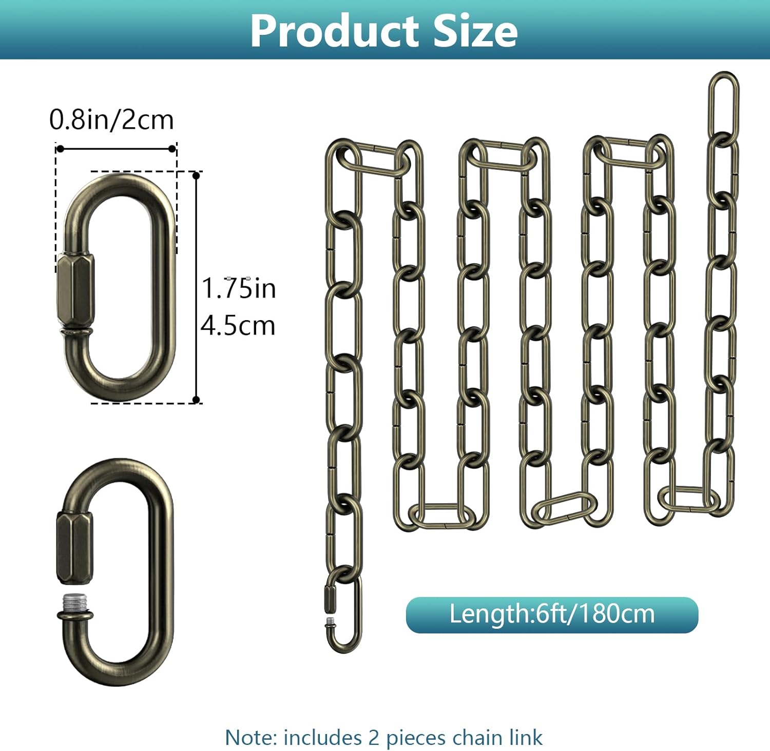 6 Feet Industrial Chrome Light Fixture Chain, Adjustable Metal Pendant Chandelier Chain Extension with Detachable Link, Maximum Load is 66 Pounds