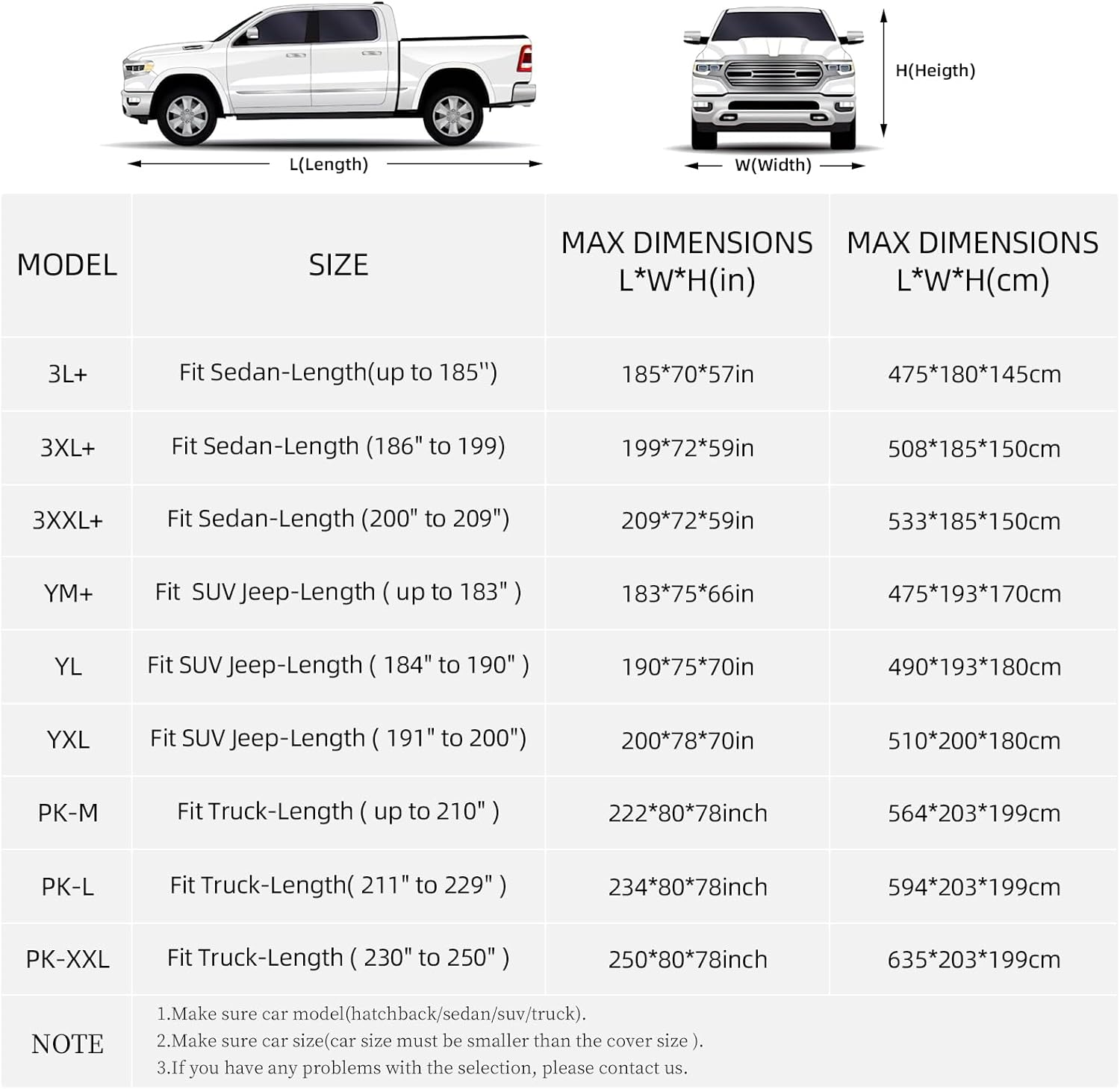 | Model | 3L+ Fit Sedan-Length (up to 185") |
