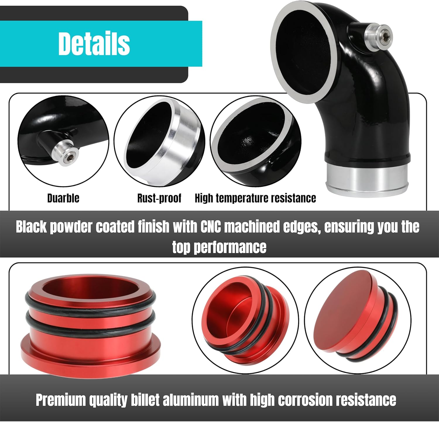 Specifications: Product Name: Turbo Mouthpiece Finish Type: Powder Coated Package List: 6.6 Turbo mouthpiece (with pcv valve) x 1pcs Hex wrench x 1pcs Clamp x 1pcs 117000500 Pipe x 1pcs Thread seal tape x 1pcs Fits for the following models and years: For Chevrolet Truck Silverado 2500 HD V8 6.6L, LLY 2004-2005 For Chevrolet Truck Silverado 3500 V8 6.6L, LLY 2004-2005 For GMC Truck Sierra 2500 HD V8 6.6L, LLY 2004-2005 For GMC Truck Sierra 3500 V8 6.6L, LLY 2004-2005 Functions: Improve throttle response for a smoother ride on the road. Increase horsepower and torque. Lower EGT's and increase air flow by 80% on the turbo inlet side.