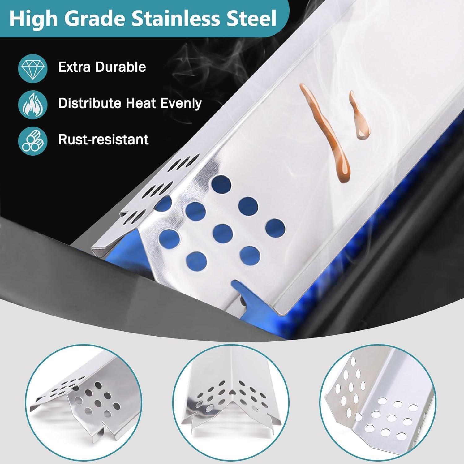 Specification: Heat Plate Dimension: L 14 9/16" x W 4 3/16" H x 1 11/16" ; Material: Porcelain steel Burner Tubes : 14 7/8" x 1"; Material: Stainless SteelLength of Igniters Wire: 85cm/33.46 inchGrates Dimensions: 16 15/16"x 8 5/16" for each, 16 15/16" x 16 5/8" for totalGrates Material: Matte cast ironPackage: 2pcs Grill Grates + 2pcs Heat Plates + 2pcs Grill Burners Tubes + 2pcs Igniters▶Grill Replacement Parts Fits For Nexgrill 2 Burner 720-0864 720-0864M; Megamaster 2-Burner Grills 720-0864MA.Why Choose Our Grill Replacement Parts? ◆ Heavy duty structure, sturdy and durable,◆ Smooth surface, non stick, easy to clean;◆ Rust prevention and corrosion resistance;◆ High temperature resistance, not easily warped;◆ Adopt food grade materials, safe and healthy;◆ Any edge is carefully treated, will not scratch your hands, safe and secure.
