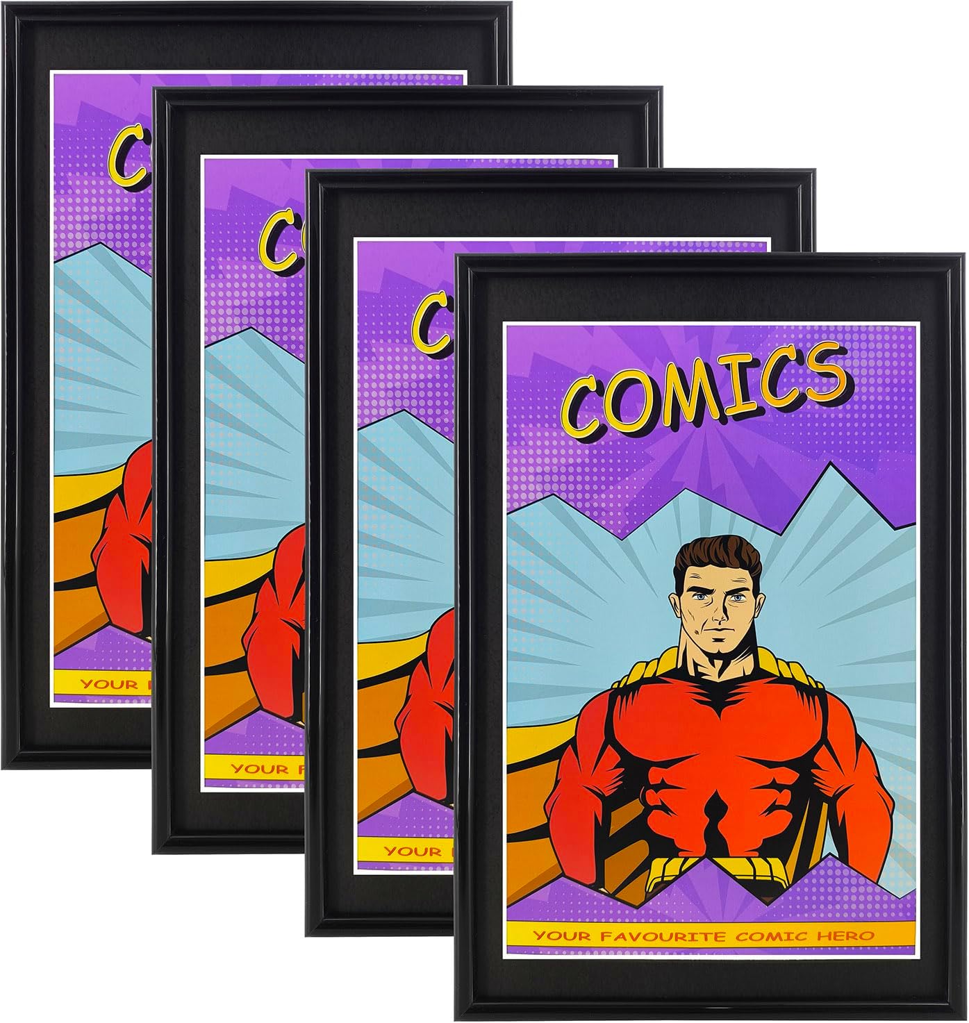 8 Packs, Comic Book Frame with Black mat, UV Protection, Black Frame for Current Comics up to 6 3/4" x 10 1/4", Fits with Comic Book Bags and Sleeves, Wall or Tabletop Display