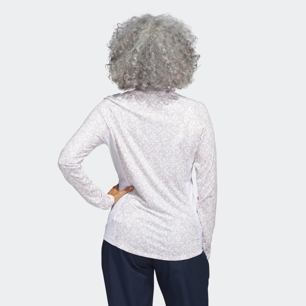 This adidas women's golf polo shirt is made of soft, moisture-wicking fabric for comfort on and off the course. A curved hem and mock neck add extra coverage. Four-way stretch fabric ensures full range of motion. Made with a series of recycled materials, and at least 70% recycled content, this product represents just one of our solutions to help end plastic waste.