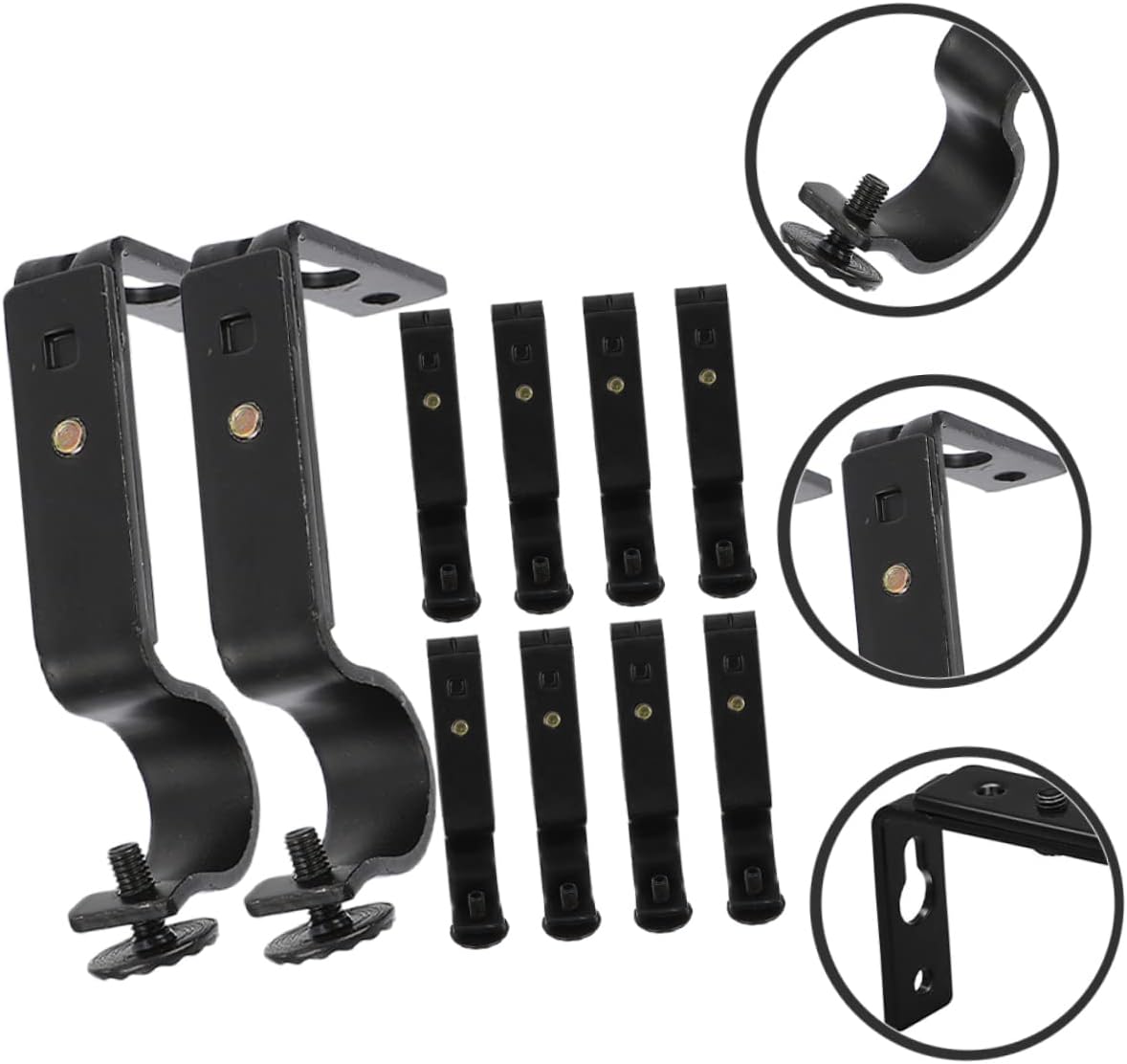 Package List 10 x curtain rod brackets Characteristics - Size: 10.00X4.70X1.70cm/3.93X1.85X0.67in curtain brackets - Color: As Shown curtain rod mounting brackets -Material:Iron curtain rod holder bracket -Works well with window curtain rod, drapery rod, heavy draperies, door curtain rod, clothes pole, etc curtain pole bracket. -These curtain rod brackets are with your curtain rod to enjoy better life curtain rod brackets for wall. -Rigorous process, selected good iron materials manufacturing, simple and delicate blind curtain rod bracket. -With simple appearance style and smooth finish, without burrs, very easy to use and install curtain rod holders. - for bedroom, living room, dining room, office, kitchen, home dormitory, study room and more curtain brackets for curtain rod.Goods Descriptiondrapery rod brackets Professional manufacturing and good reliability.curtain brackets These curtain rod brackets feature simple style to make it suitable for different house decoration demand.metal curtain rod holders Made of iron material, and high strength for maximum durability, in use
