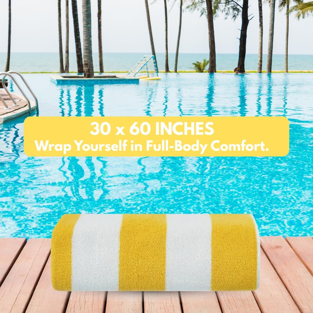 Experience Summer in Style with Oversized Cabana Beach Towels Whether you're lounging at the beach, relaxing by the pool, or drying off after a swim, our oversized cabana stripe beach towels are designed for comfort and performance. Made from 100% ring spun cotton, these towels are soft, absorbent, and perfect for the whole family. With a generous 30x60 inch size, they double as cozy bath towels, pool towels, or even a quick-drying beach blanket. This 4-pack beach towel set features vibrant stripes and a lightweight feel—ideal for travel, swimming, or a sunny day outdoors. Whether you need towels for men, women, or kids, these durable and stylish towels check every box. Great for use as hot tub towels, swim towels, or cute beach towels for vacation, they bring both value and quality. Enjoy the softness of thick bath towels with the convenience of fast drying. Perfect for those looking for bulk beach towels, large beach towels, or striped towels that stand out. From family trips to solo beach days, these towels are your go-to for summer comfort