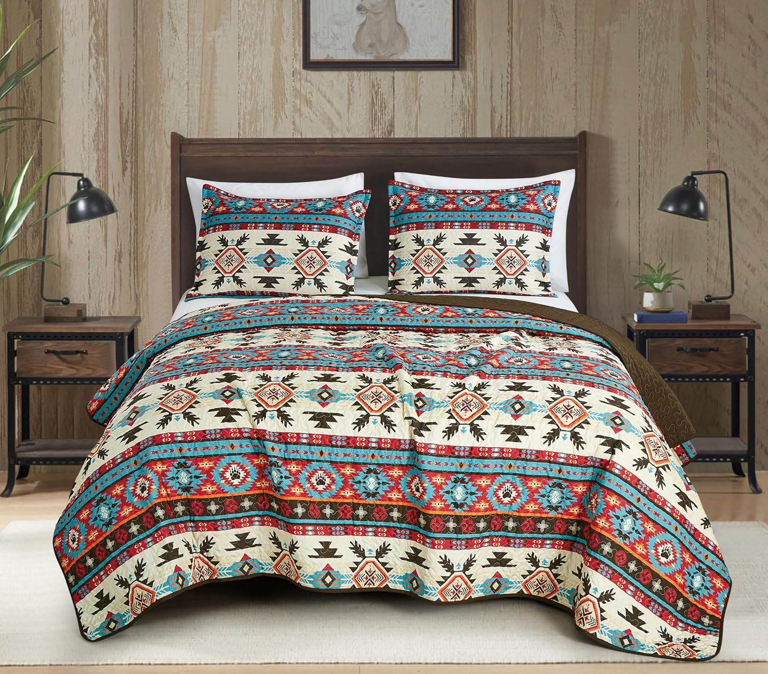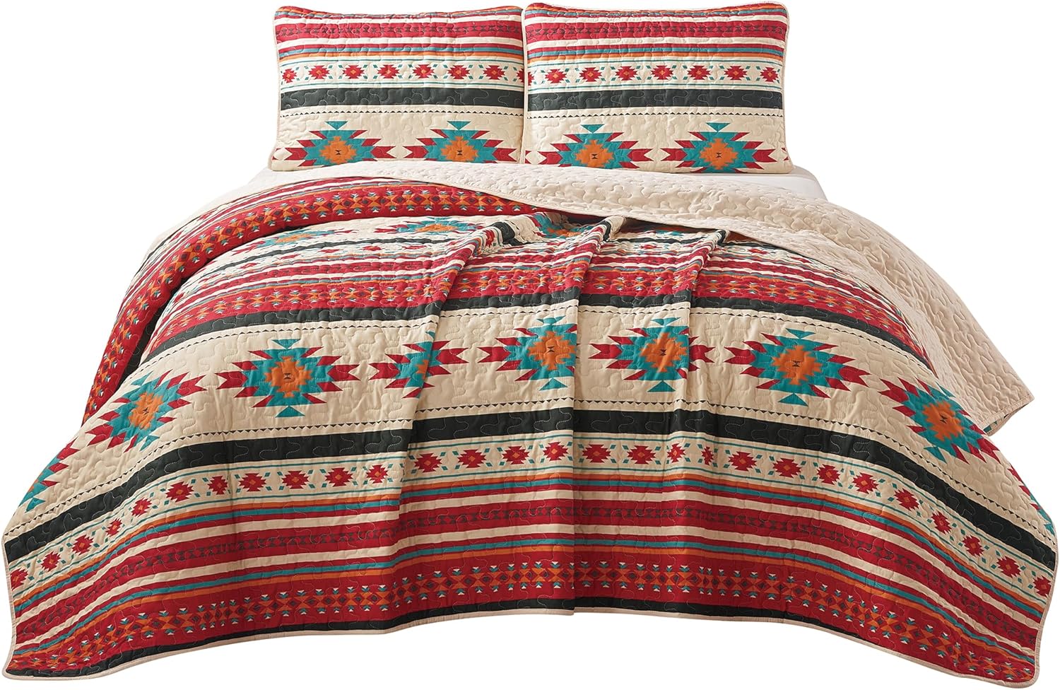 Give your bedroom a southwestern themed look in your space with the aztec style bedding collection. Showcasing hints of tribal geometric symbols for a rustic charm. Lightweight style quilted bedspread set yet not short of warmth, providing comfort year-round. An ideal decorative bedding piece for southwestern themed decors. Made with 100% microfiber, the quilt is fade and wrinkle resistant. Transform your bedroom into a cozy haven of relaxation and style with this stylish printed quilt set.