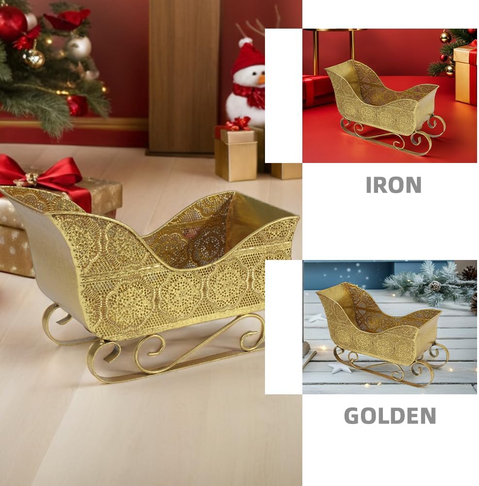 Description This sleigh decoration captures the essence of Christmas by combining artistry with practicality. Its vintage-inspired look evokes nostalgia while offering a unique way to present small presents or treats. Whether used as a standalone piece or integrated into larger displays, it adds sophistication to your celebrations. The compact size makes it suitable for intimate spaces, ensuring no area feels left out during the joyous festivities of the season. Features -Color:Golden -Material:Iron -Size:33.00X18.00X12.50cm/12.97X7.07X4.91in -Festive display accent: place this sleigh on your mantel, shelf, or desk to create a delightful holiday atmosphere in both home and professional settings -Unique present container: fill the sleigh with treats or small presents, offering a creative way to present presents at christmas parties or special events -Sturdy metal build: made from iron, this sleigh ensures longevity and can be reused annually as part of your cherished christmas decor -Charming rustic appeal: with its vintageinspired style, this sleigh complements other holiday decorations such as garlands, wreaths, and figurines -Universal : whether you're decorating for school functions, workplace festivities, or intimate , this sleigh fits all occasions beautifully