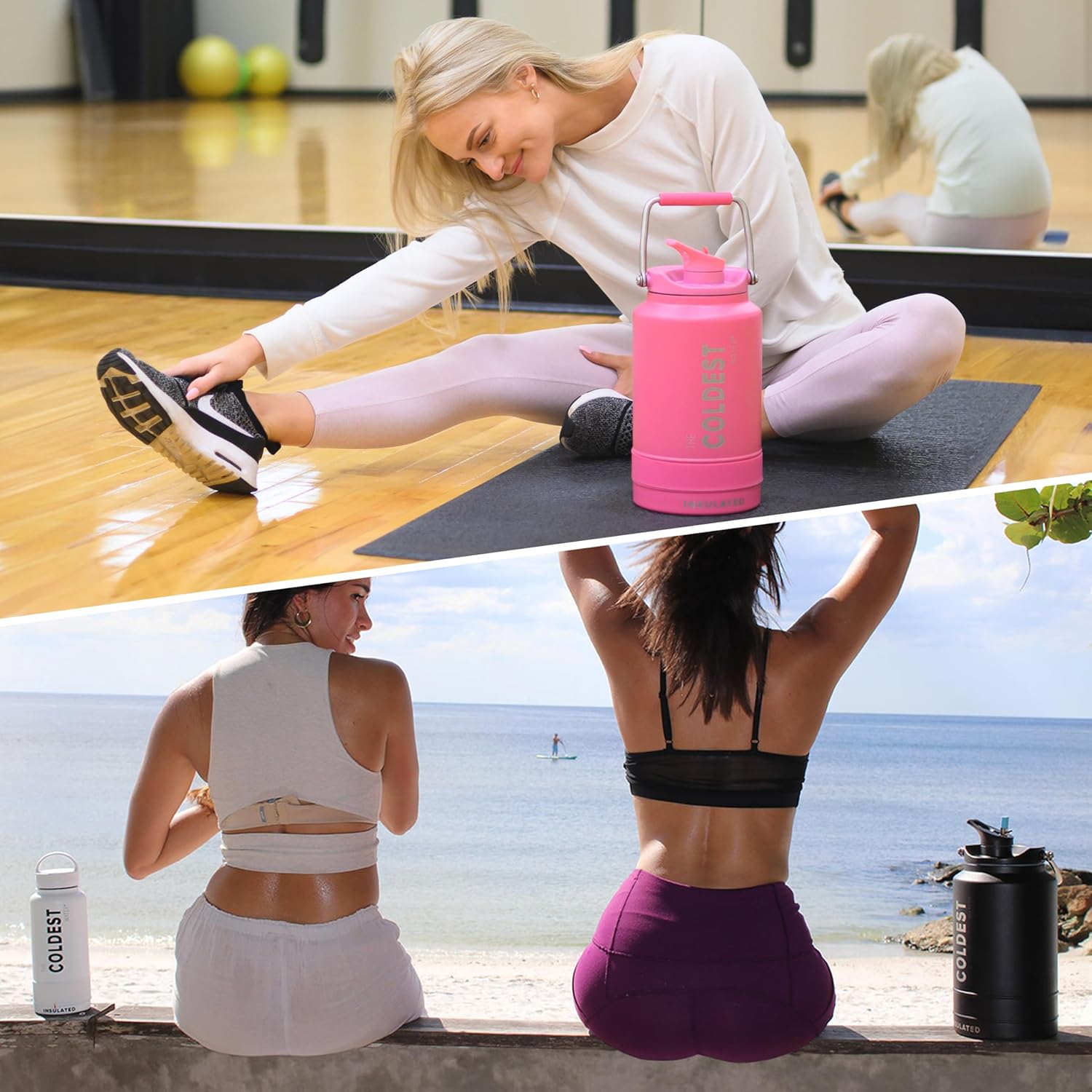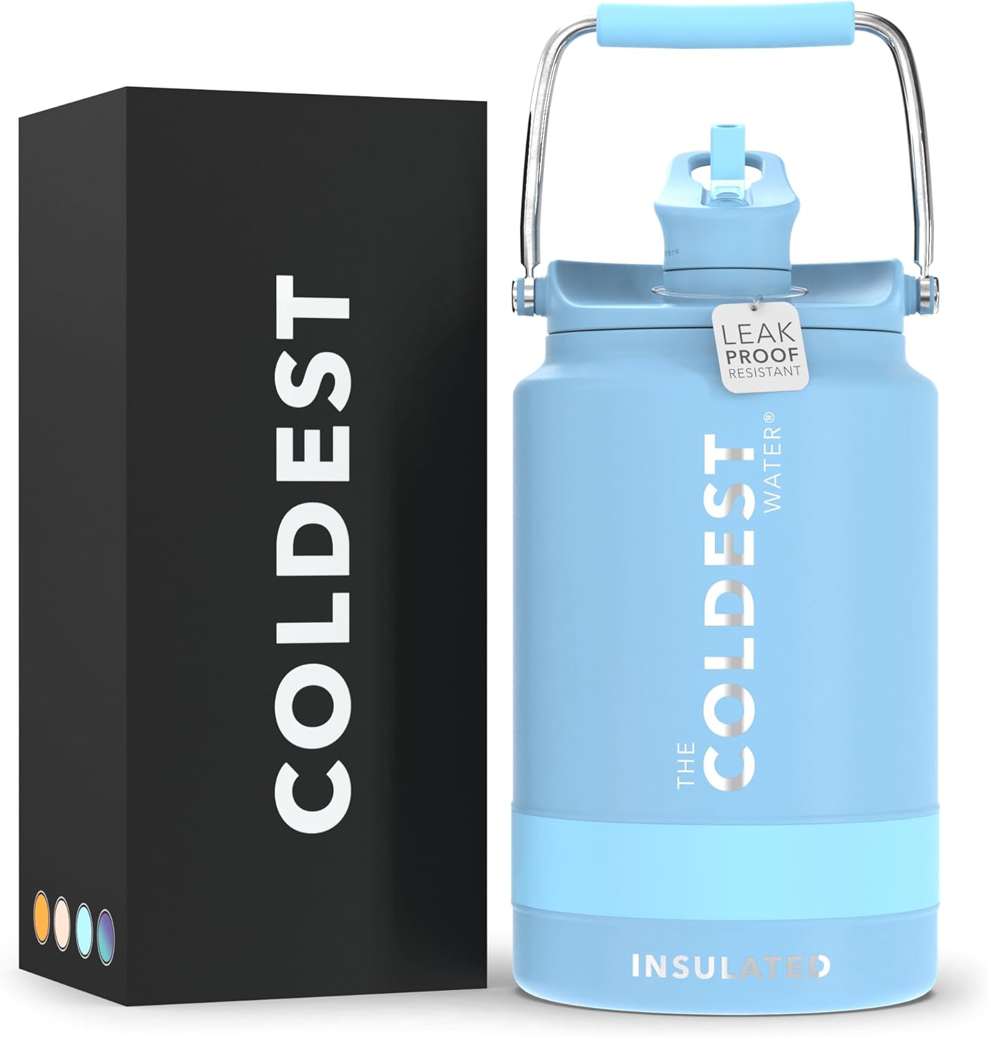 Introducing the Coldest Sports Water Bottle, an epitome of hydration innovation that seamlessly blends style, functionality, and durability. Unveil a revolution in hydration with the world's first insulated coldest gallon featuring a convenient flip-top straw lid, making every sip a breeze. Crafted from vacuum insulated 18/8 premium stainless steel, this colossal water bottle gallon is a marvel of engineering, promising 100+ hours of cold temperature maintenance and providing armor technology for durability. With a massive capacity of one gallon, this metal canteen growler gallon jug water bottle ensures you're well-equipped for any hydration challenge. Whether you're conquering the gym, embarking on an outdoor adventure, or simply staying refreshed at work, the Coldest Sports Water Bottle is your trusted companion. The super-insulated triple wall and thermo mug technology guarantee that your beverages stay at the perfect temperature, without any sweating to compromise your grip. Choose from two sizes - 1/2 gallon and 1 gallon - to suit your hydration preferences. The six color variations add a touch of personal style to your hydration routine. Worried about the inconvenience of cleaning your gallon water bottles? Fear not, as Coldestβs one gallon water jugβs easy-to-clean design simplifies maintenance, ensuring that your water jugs remain pristine even after the toughest adventures. The Coldest Sports Water Bottle isn't just about performance; it's a lifestyle. It fits seamlessly into your active routine, and the no-sweating feature ensures a comfortable grip during every activity. The leak-proof design eliminates the risk of spills, and the ability to accommodate huge ice cubes allows you to customize your drinks to perfection. Elevate your daily hydration experience with the Coldest Sports Water Bottle - a fusion of innovation, durability, and style.