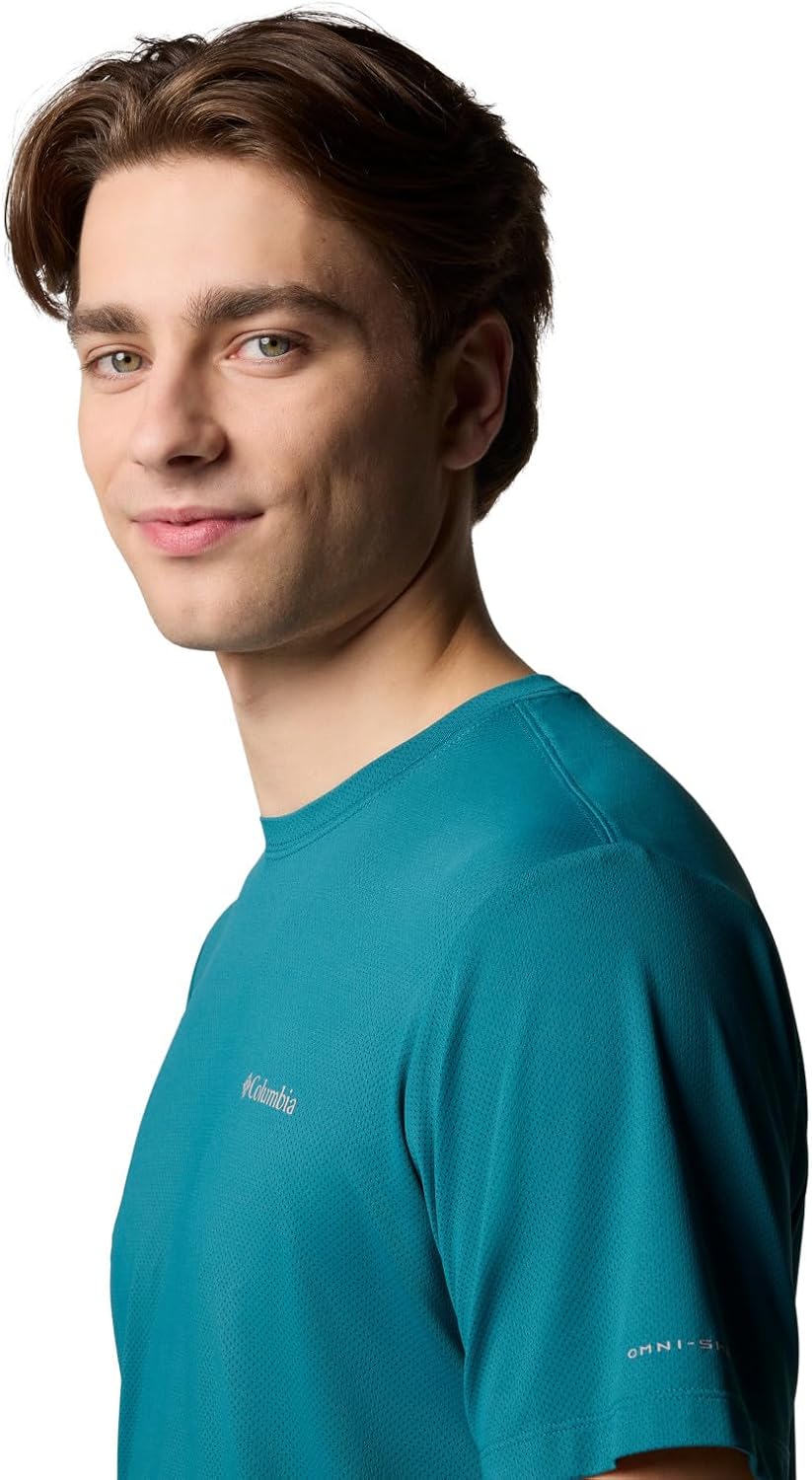 Sun-blocking and sweat-wicking, this crew shirt will be your new go-to for hitting the trail. It has a hint of stretch for easy movement and a handy pen sleeve in the chest pocket. Columbia offers this shirt in multiple colors and sizes. Extended and tall sizing available. Active and Regular fit.