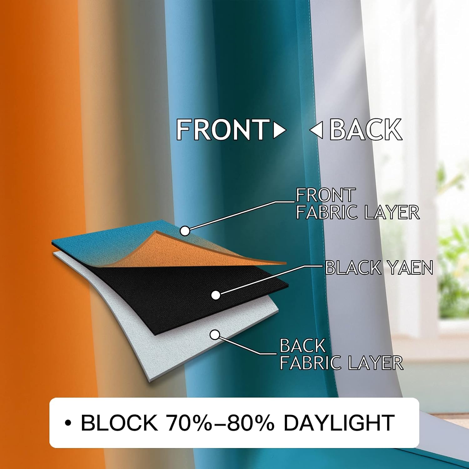 • Contrast Color and ombre blackout Design: Our bedroom curtains have a unique effect. With the one color on the left that gradually become to a another colour on the right, adding a realexed and pop feel to your home. A pair/set of our 2 tone ombre blackout curtains offer 4 creative combinations since the two panels can be switchable hanging for a DIY different look and feel.