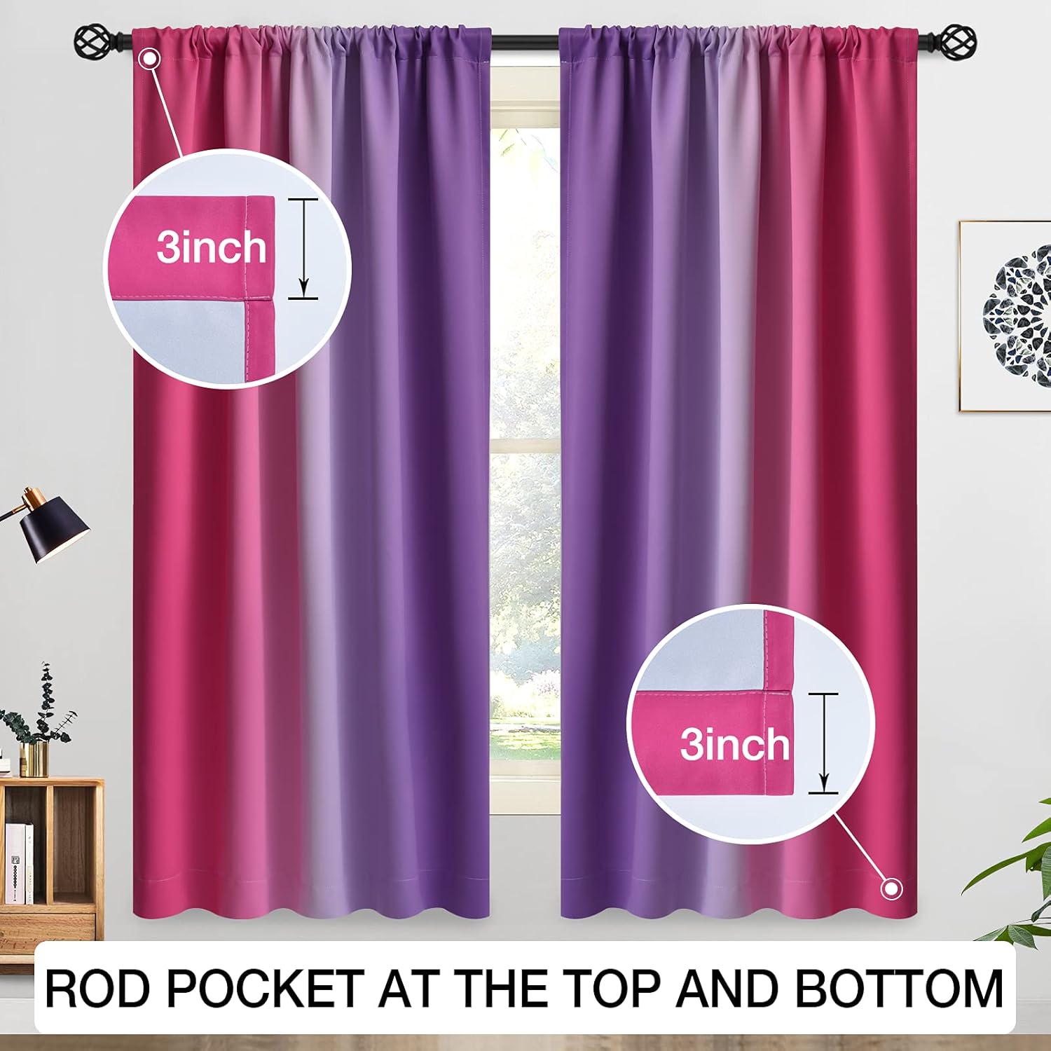COSVIYA Ombre Room Darkening Curtains 84 inches Length for Living Room, Light Blocking Pink and Grey 2 Tone Reversible Rod Pocket Gradient Window Drapes for Kids Bedroom, 2 Panels, 52 inches Wide