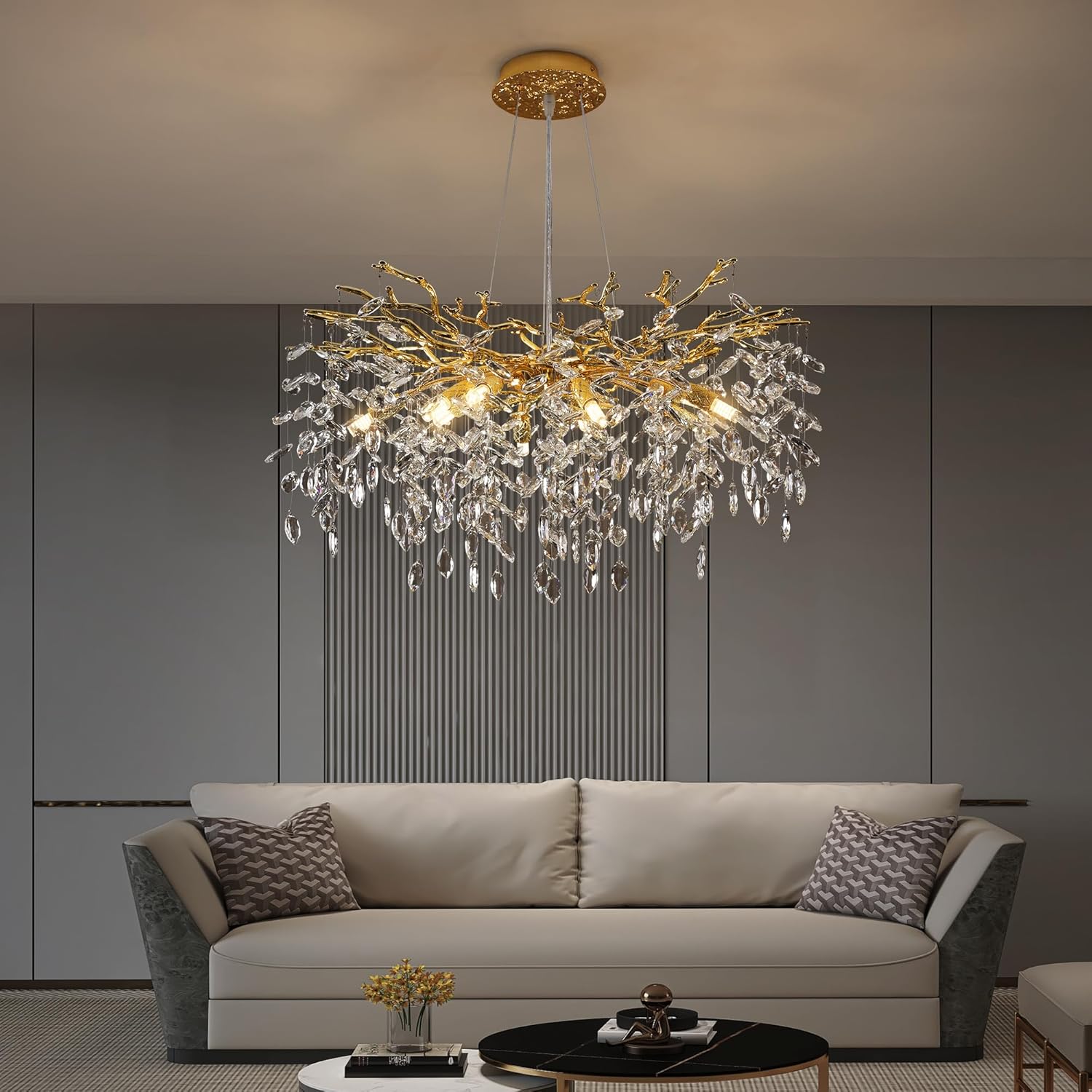 | Included Components | A pair of gloves, Branch chandelier x1, Installation instructions x1, Parts package x1, Set of crystal strings |