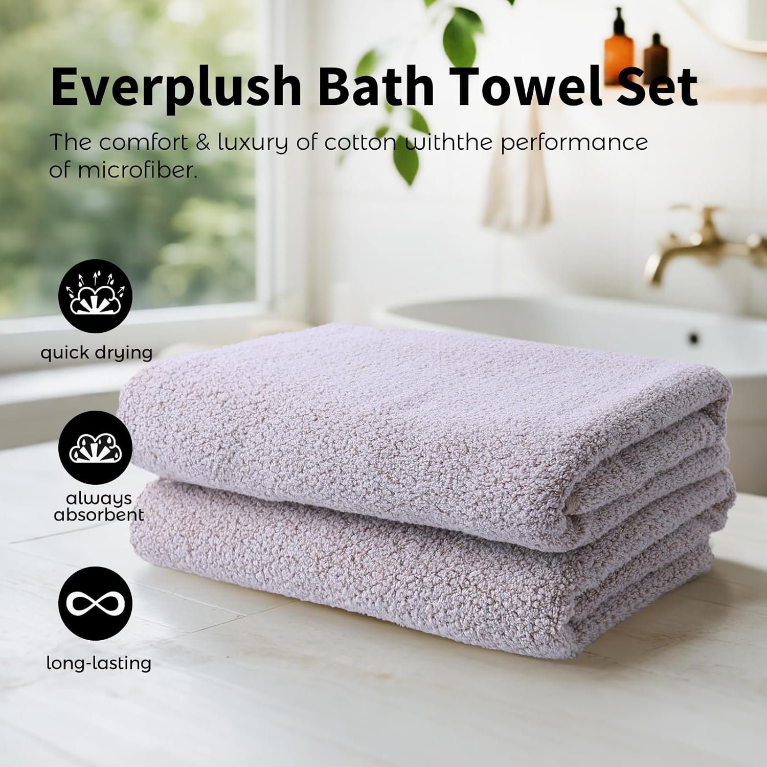 The Everplush Diamond Jacquard 6-Piece Bath Sheet Towel Set offers luxury and practicality. Crafted with exclusive proprietary technology and certified by OEKO-TEX 100. Boasting long-lasting plushness via premium materials and dual-loop construction, it stays ultra-soft through frequent washes. The dual-loop design also enhances absorbency, drying you quickly, while the towels themselves dry in half the time of traditional ones, could keep fresh. This versatile set includes 2 extra-large bath towels, 2 hand towels, and 2 washcloths, suitable for home, travel, and more. Easy to care for, they're machine washable, fade-resistant, and minimize shedding, keeping them looking fresh for years.