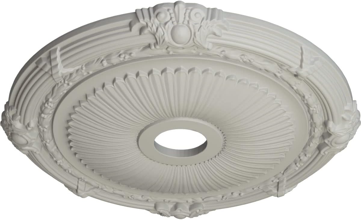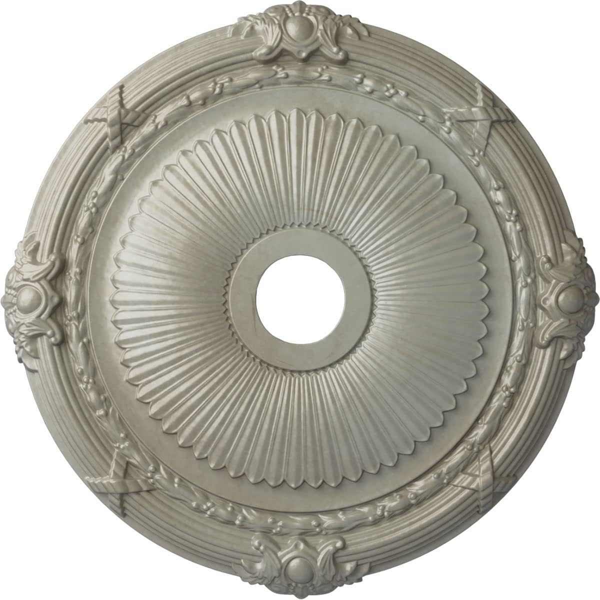 Our ceiling medallion collections are modeled after original historical patterns and designs. Our artisans then hand carve an original piece. Being hand carved each piece is richly detailed with deep relief, sharp lines, and a truly unique touch. That master piece is then used to create a mold master. Once the mold master is created we use our high density urethane foam to form each medallion. The finished look is a beautifully detailed, light weight, solid construction, focal piece. The resemblance to original plaster medallions is achieved only by using our high density urethane and not vacuum formed, "plastic" type medallions. - Medallions can be cut using standard woodworking tools to add a hole for electrical or a ceiling fan canopy. - Medallions are light weight for easy installation. - They are fully primed and ready for your paint. If you have any questions feel free to ask. These are in stock and available for immediate shipment.