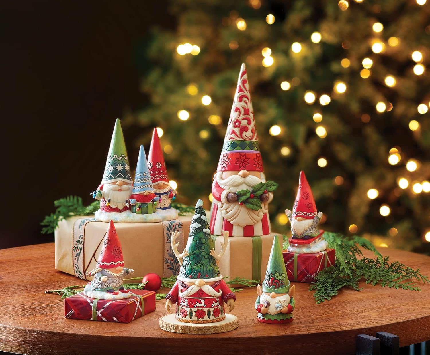 Jim Shore's hand-crafted Heartwood Creek collection imparts a sense of hope and nostalgia, embracing inspiring themes of family, tradition, spirituality and patriotism. His designs are inspired by the time honored motifs of folk art and quilting. There's no place like gnome for Christmas! Celebrate the season with this incredibly crafted holiday gnome by Jim Shore. Patterned in delicate engravings and holly this double sided gnome reminds us gnome-body's perfect with a naughty and nice hat. About Us: Enesco is committed to BRING JOY EVERY DAY. The premier global destination for high-quality giftware, and home décor, our prestigious family of brands includes: Department 56 Village, Things Remembered, Foundations, Jim Shore Heartwood Creek, Disney Traditions by Jim Shore, Disney Showcase Collection, Disney by Britto, Designs by Lolita, Our Name is Mud, and many more.