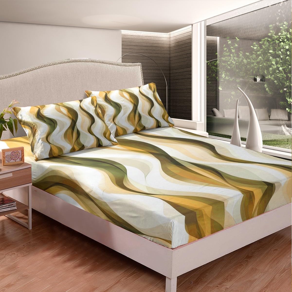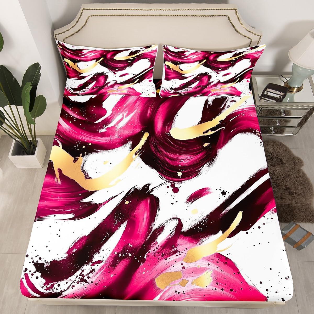 Size Information Twin size: 1 Fitted Sheet 39"Wx75"Lx16"H and 1 Pillowcase 20"Wx30"L. Full size: 1 Fitted Sheet 54"Wx75"Lx16"H and 2 Pillowcases 20"Wx30"L. Queen size: 1 Fitted Sheet 60"Wx80"Lx16"H and 2 Pillowcases 20"Wx30"L. Versatility We have many kinds of styles for you to choose. You can easily find a product that suits the style of your room. The item is not only suitable for your home, bedroom, guest room, living room, or rv, your families, friends, relatives, boyfriend, girlfriend. Modern Design The luxury aesthetic bedding set is made reactive printing and dyeing process. The pattern is clear, the color is bright, which will not fade after repeated washing. Personalized As a manufacturer of digital printed home textiles, we follow current trends and bring you the latest and stylish home textile products. The item will make the room decorated in exquisite taste.