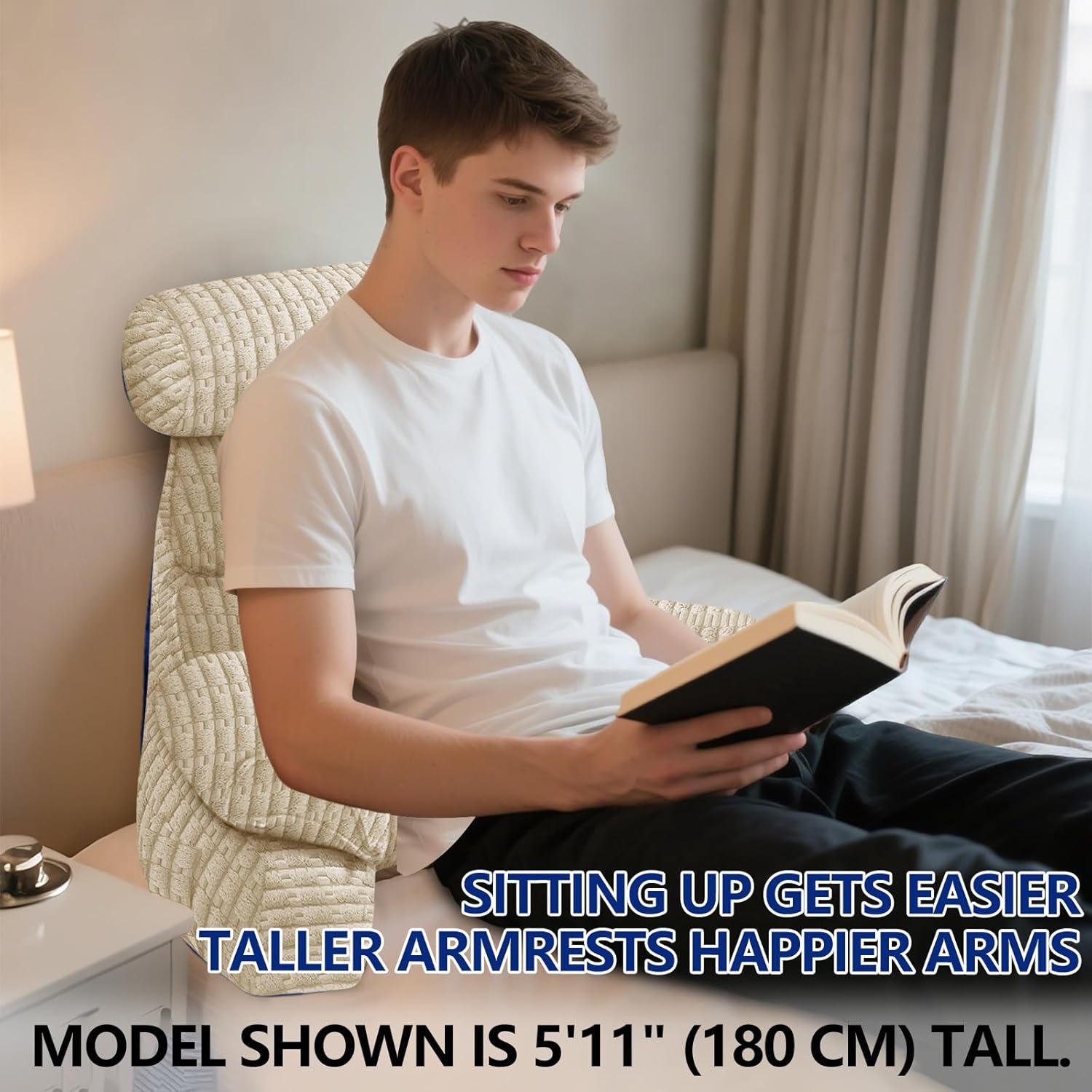 Reading pillow with arms - effectively supports your neck and shoulders. When you sit in bed to relax, it effectively relieves back fatigue and creates unparalleled comfort.Compressed packaging - All reading pillow products are vacuum packed for compact transportation. After unpacking, you need to vigorously knead and shake the pillow for 5 minutes to allow the fiber filling inside to disperse. It takes 48 hours to fully unfold, and then you can achieve the best experience. If you have any questions about the reading pillow, please feel free to contact us at any time.Comfortable support backrest - detachable jacket for cleaning. The lining is filled with premium shredded memory foam filling, providing maximum support. It is clean, soft, and rebounds quickly, while maintaining the body contour, providing excellent support for the back, arms, neck, and shoulders.Neck pillow and arm support - providing complete support for your neck while also achieving multifunctional use to support your head, back, waist, and legs. When you rely on the armrest to read the pillow, it reduces joint and muscle pressure.Experience ultimate relaxation - reading on the back pillow can create unparalleled comfort. Let you no longer lazily lie in bed reading, curl up on the sofa reading, watch TV, and play video games. It is very suitable for adults, children, the elderly, and young people. It may be your ideal choice.