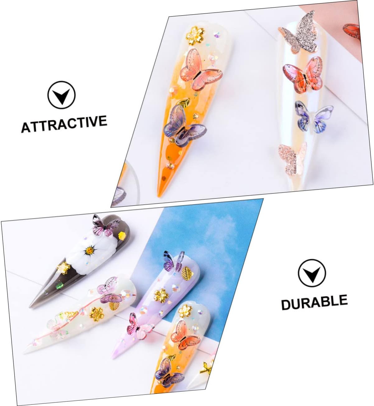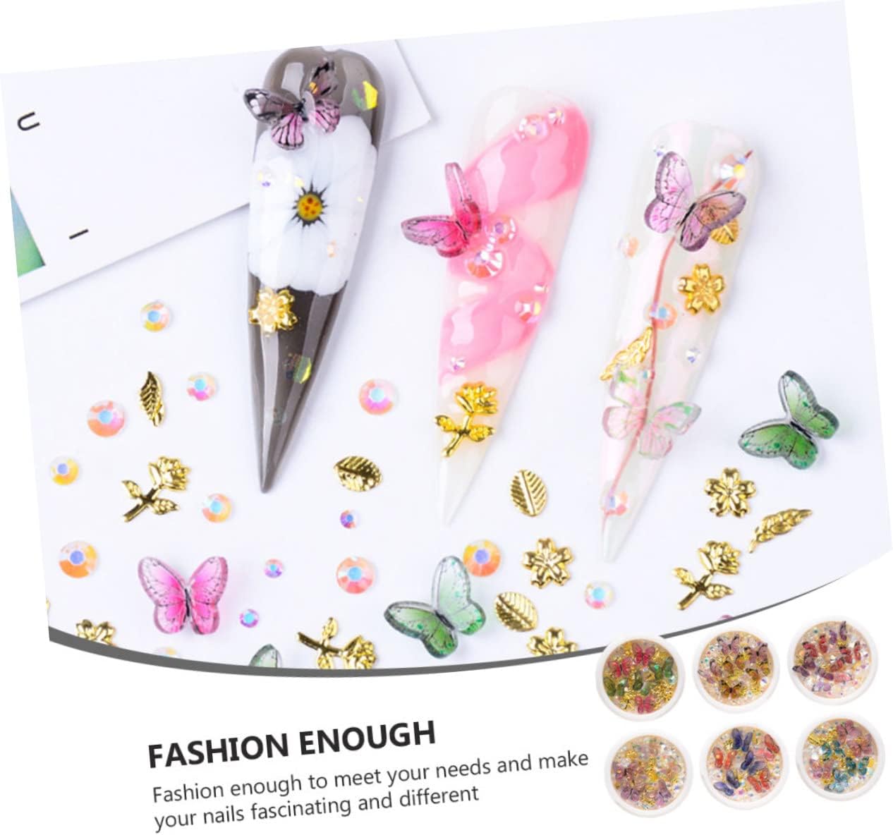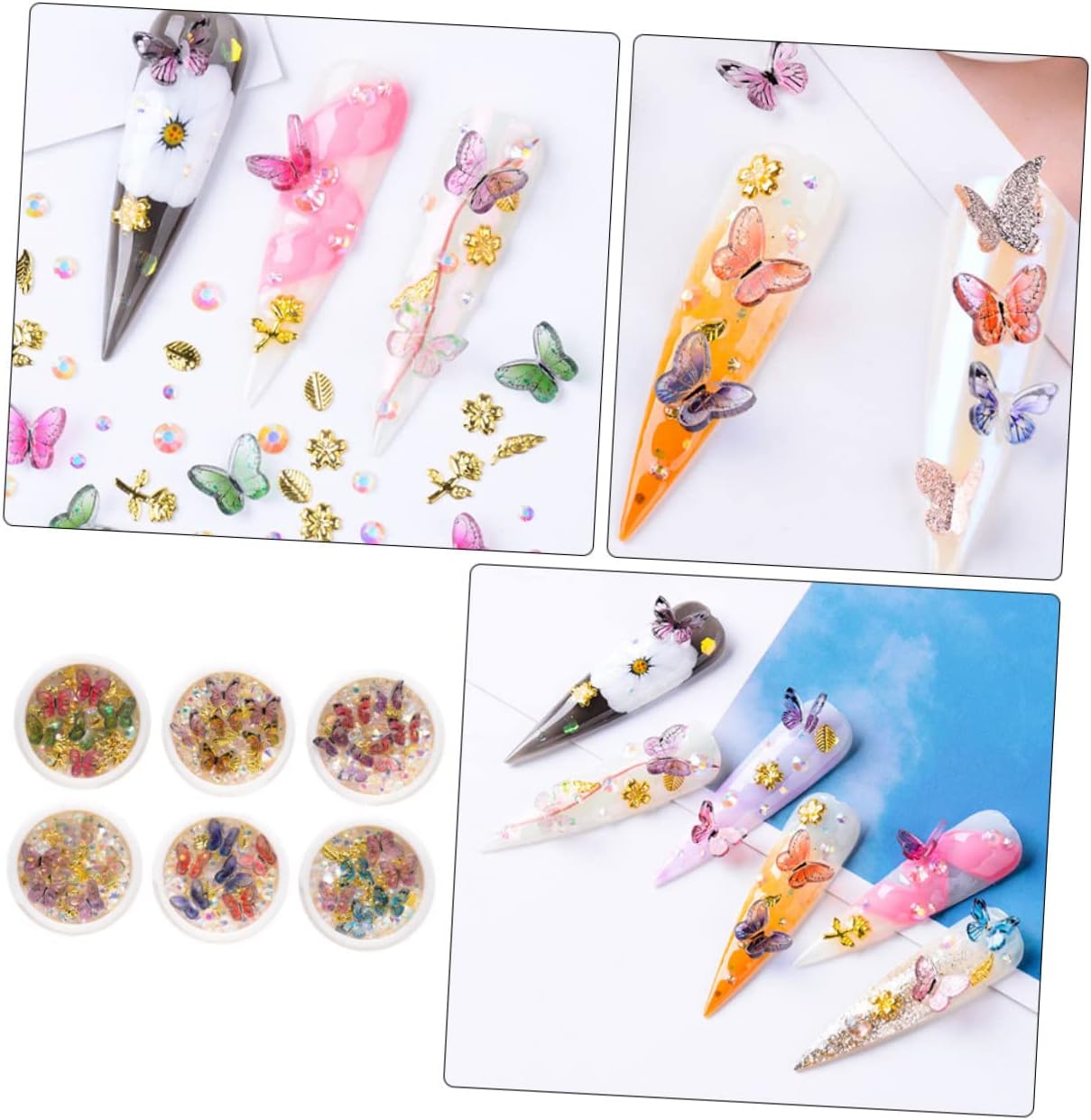 Package Include 18 boxes x Butterflies Nail Rhinestone Characteristics - Color: Assorted nail art nail sequin. - Material: Alloy, ABS Butterflies Nail Sequins. - Size: About 4.00X4.00X1.70cm/1.57X1.57X0.67inch DIY Nail Art Stickers. - These colorful butterflies nail rhinestone charms are made of materials and delicately made, which you can use it safely Butterflies Manicure Charms. - DIY nail art works with your smart imagination can make you glamorous women nail glitter. - You can also serve as a decoration in phone cases, DIY crafts, wallet, shoes, jewelry making nail glittering rhinestone. - Suitable for home DIY nail decoration lovers or professional nail art Butterflies Nail Stickers. - Easy to apply on natural or artificial nails. Suitable for both personal and nail salon. DIY Nail Art RhinestonesGoods InformationButterflies Nail Stickers Want a butterflies rhinestone design nail decorations? If yes, this item is suitable for you.nail glittering rhinestone Can decorate your phone case, mirror, greeting cards, crafts, or anything you want.DIY Nail Art Rhinestones These butterflies nail rhinestone glitter decorations are super lovely, it gives you a wide variety of styles to choose, it's fun for nails or even to add a little to your make up