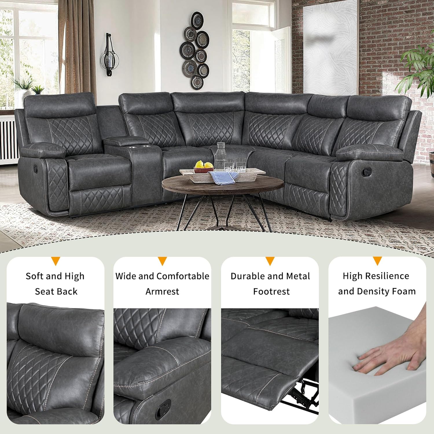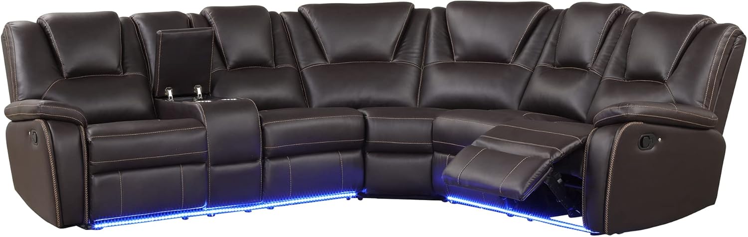 Overall Dimension: 113.5"D x 113.5"W x 40.5"HProduct Weight: 373.45(lb)Seat Height- Floor to Seat: 19.3"Back Height - Seat to Top of Back: 25.6"Weight Capacity: 330 lbs / per seatUpholstery Material: PU LeatherFrame Material: Iron+PlywoodSeat Construction: FoamLeg Material: MetalRemovable Backrest: NoRemovable Cushion: NoSet Includes: Recliner ChairReclining Type: ManualPosition Type: Infinite Positions (between 108 degree-160 degree)