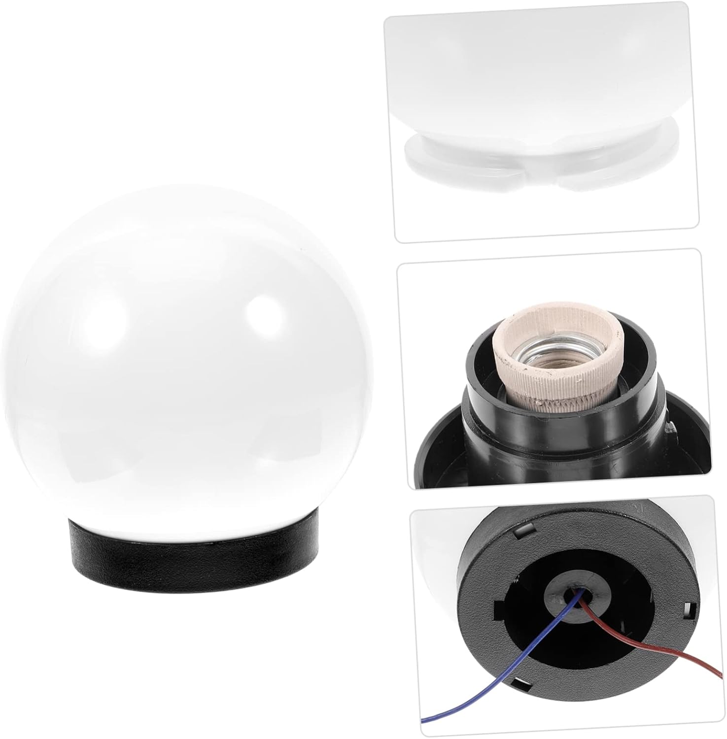 Package Include 1 x post lamp shade Features -Material:Plastic replacement lampshade - Size: 22.00X20.00X20.00cm/8.65X7.86X7.86in patio lampshade -Note: The wire is Random color light covers - ColorWhite wall lamp cover - Outdoor globe light shade is embellishment for outdoor, garden, patio, doorway, porch, walkway and other exterior places street lamp cover. - Ball lamp shade with simple design makes the light softer is suitable for patio lights, garden light, and much more light cover for wall lamp. - Garden light shade is made of plastic, corrosion resistance, weather resistance., suitable for outdoor environments light bulb cover. - Outdoor dome lampshade, simple style, workmanship, suitable for outdoor patio decoration post mount lampshade. - Plastic lamp shade can be a good decoration for your post lamp and can match the rest of your outdoor decorations. light fixture coverGoods Descriptionfloor light shade Its sleek and contemporary design makes it the for garden, patio, hallway and more.light globe Our outdoor lamp shade is made of plastic material, smooth surface, not easy to break, , safe and convenient to install