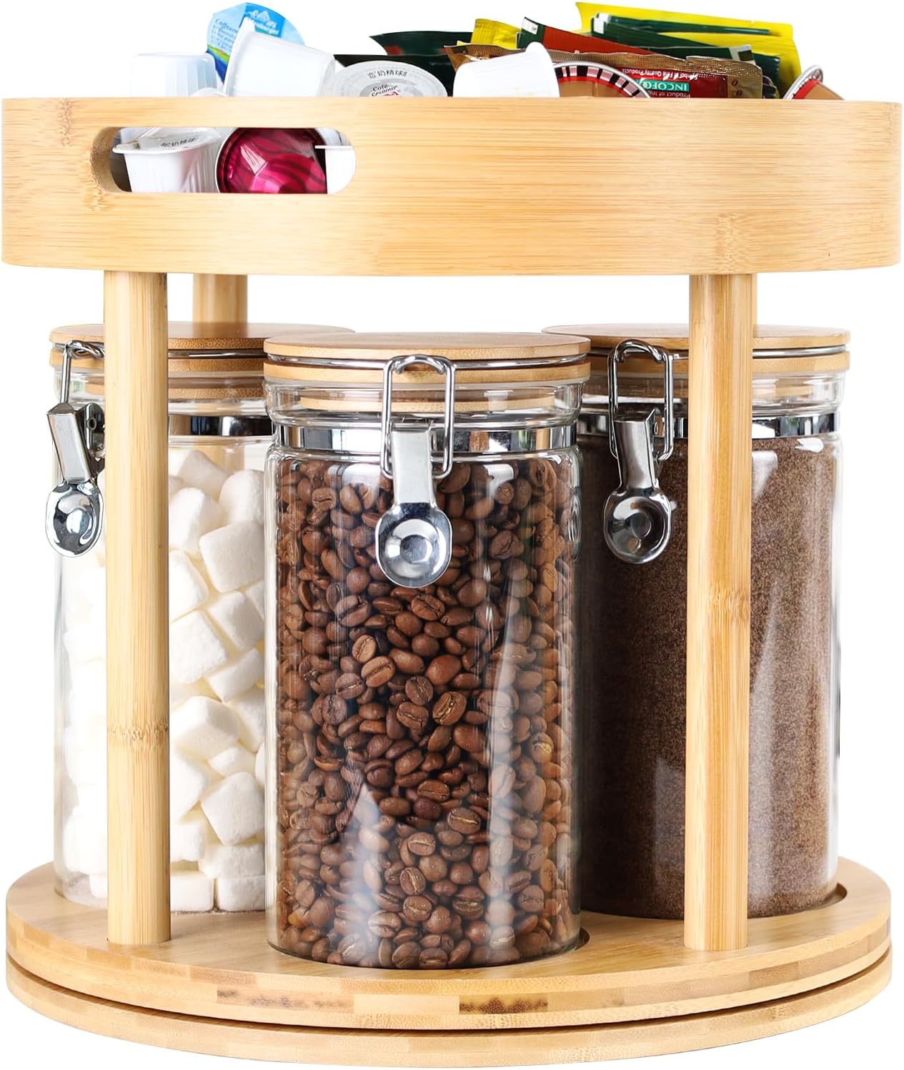 | Included Components | Glass Canisters, Coffee Scoops, Coffee Pod Stands, Drawer |