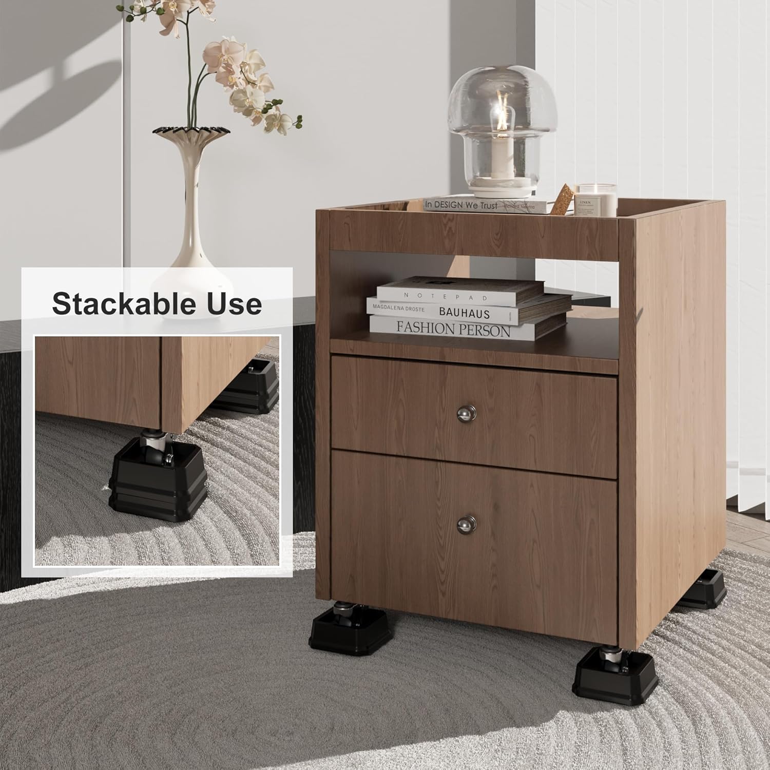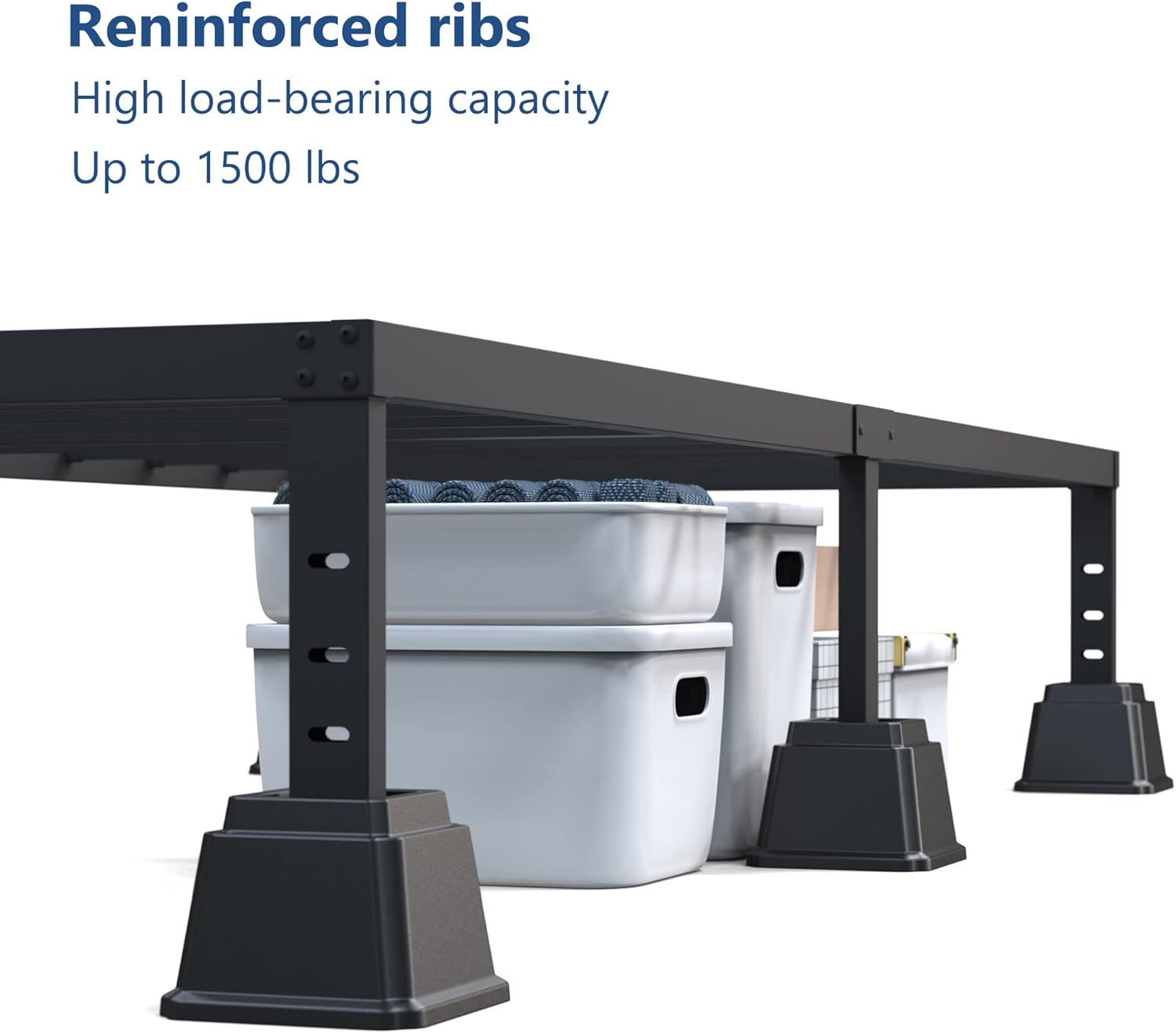 • Safety and Solid: Bed risers 3 inch made of durable, Eco-friendly and recyclable plastic, enough to bear about 1,500 pounds. Bed riser blocks can stably lift up a variety of furniture without wobble or shift, and will not scratch your wooden floor.