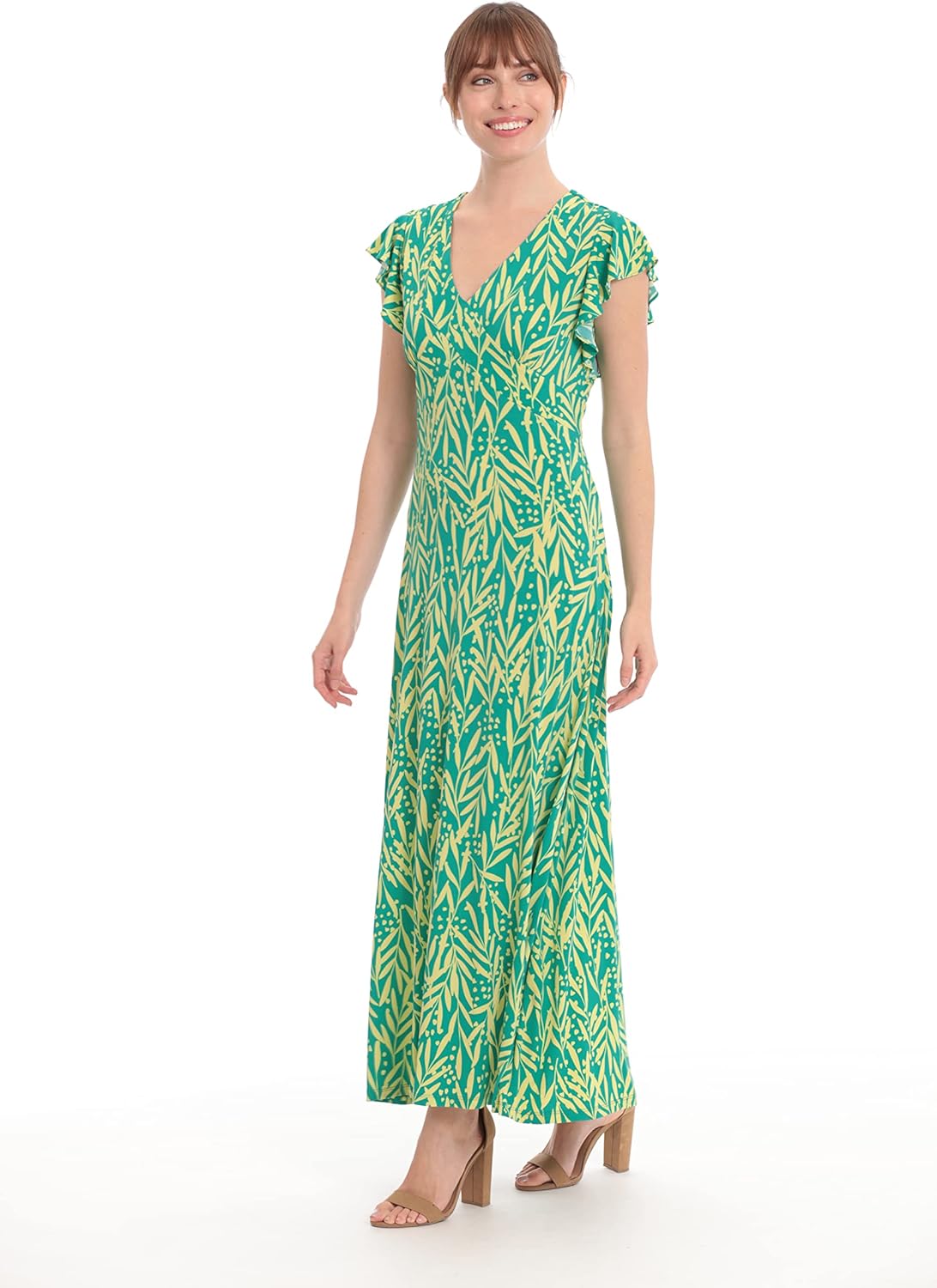 London Times Women's Dresses V-Neck Ruffle Sleeve Matte Jersey Dress Casual Summer Fun Easy Wear to Brunch