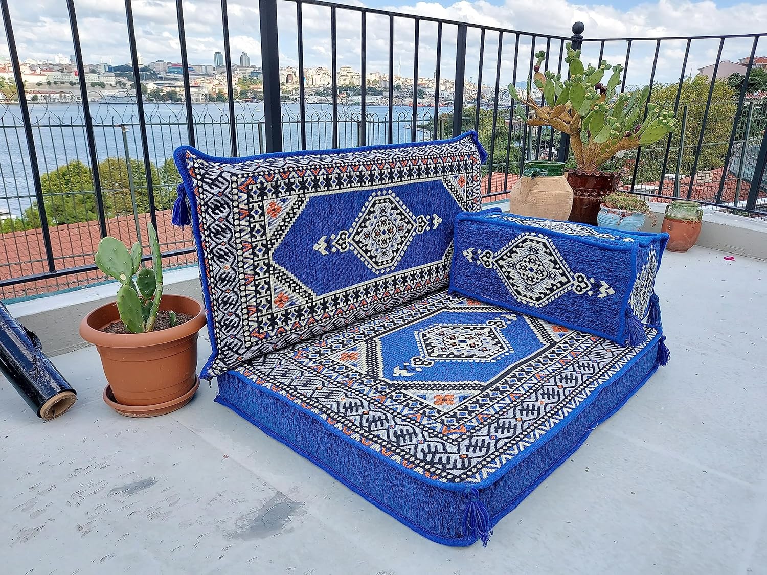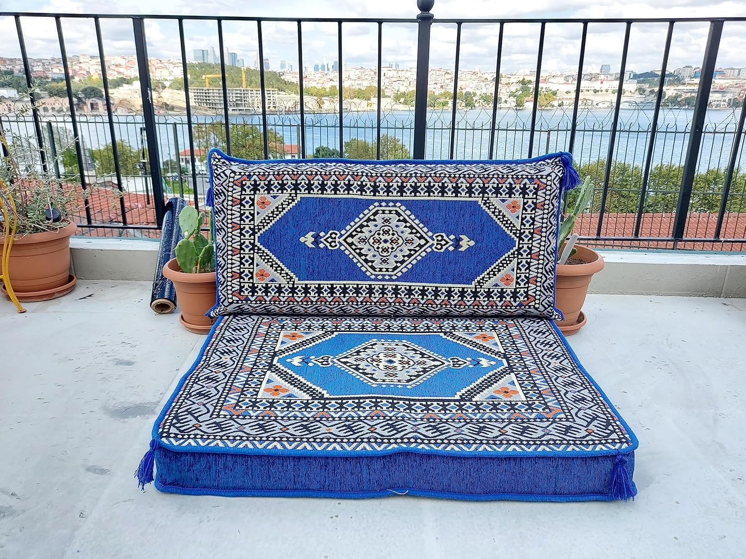 You will receive products in the variant you selected from the listing page. This sofa set comes in 3 separate pieces. -1 Floor Seating Cushion (95 x 70 x 10 cm / 37 x 27 x 4 inch) -1 Backrest Pillows (90 x 40 x 10 cm / 35 x 16 x 4 inch) -1 Armrest Pillows (50 x 20 x 20 cm / 20 x 8 x 8 inch) * The floor sofas are not freestanding, they need to lean against a wall or something hard behind * We can customize this product upon your request * All covers include their foam filling inserts * All covers are zippered * Beautiful texture and soft to touch * Comfortable to sit or sleep on * Top-quality finish and workmanship * Excellent for homes, offices, hotels, cafeterias, etc. * Machine washable
