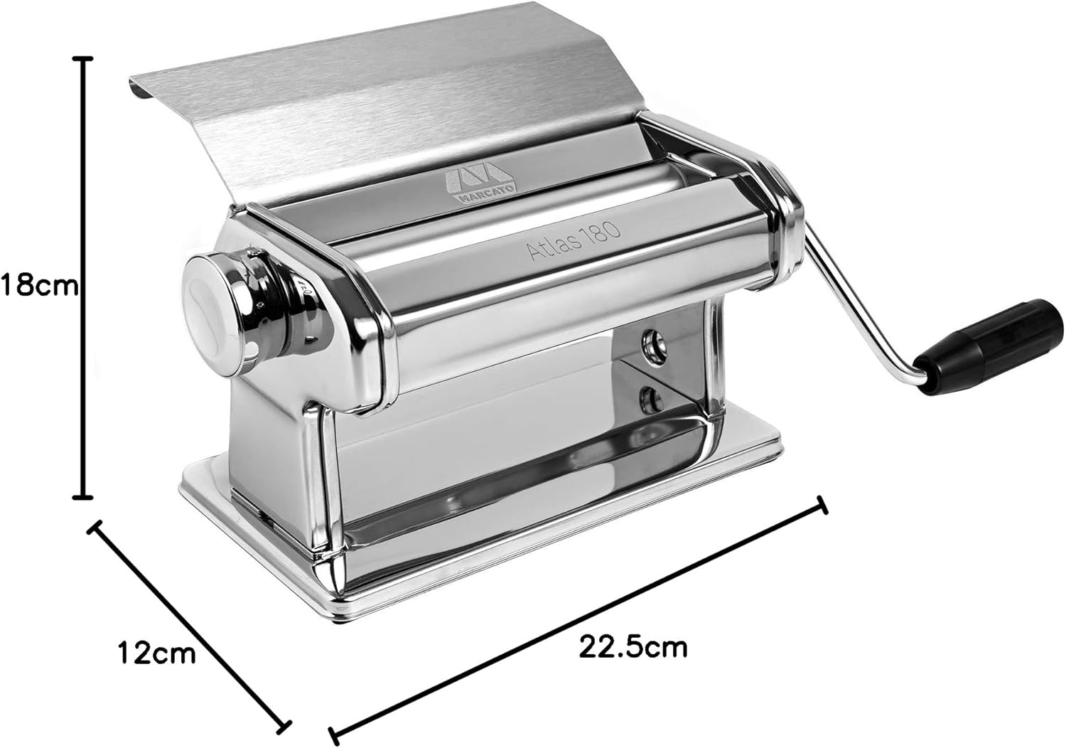 The machine for those who love preparing home-made pasta in style & comfort. Atlasmotor combines the versatility of Atlas pasta machines with the functions of the Pastadrive motor to provide you with the perfect set. Using the motor allows you to avoid securing the machine to the worktop and you have both hands free during use. It's consistent speed reduced processing times & personal effort. This machine features a 10-position adjustment knob allowing you to prepare your sheets in 10 thicknesses, depending on your desired pasta shape. You can easily make lasagna, fettuccine, tagliolini, and 11 other pasta shapes thanks to the wide range of separately available accessories. The anodized aluminum rollers feature an imperceptibly rough surface causing pasta to come out porous so that it binds more easily with your desired sauces. Easy to clean: Let sit out for 30 minutes and then clean off remaining dough residue with a dry cleaning brush. The machine is not dishwasher safe. Guaranteed against manufacturing defects under 2-year warranty (from date of purchase) & does not cover damage caused by improper use. 100% made and assembled in Italy. Since 1930 Marcato has been passionate about developing products that make people happy. The culture of healthy eating is the first step towards well-being: starting with pasta made with simple and healthy ingredients - the symbol of the Mediterranean diet. All Marcato products are made for people who love all things expertly crafted and have rediscovered the joy of good food.