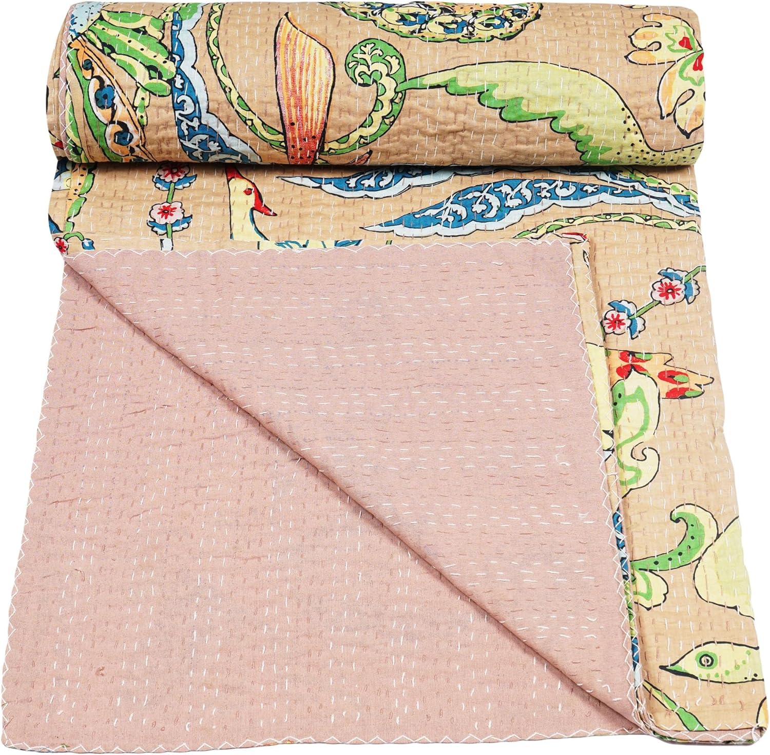 Wrap yourself in the vibrant colors and eclectic charm of our Print Kantha Quilt. Made from a stunning combination of printed fabrics, this quilt is a masterpiece of Indian craftsmanship. Each piece is carefully stitched together using traditional Kantha embroidery, creating a unique and eye-catching design.