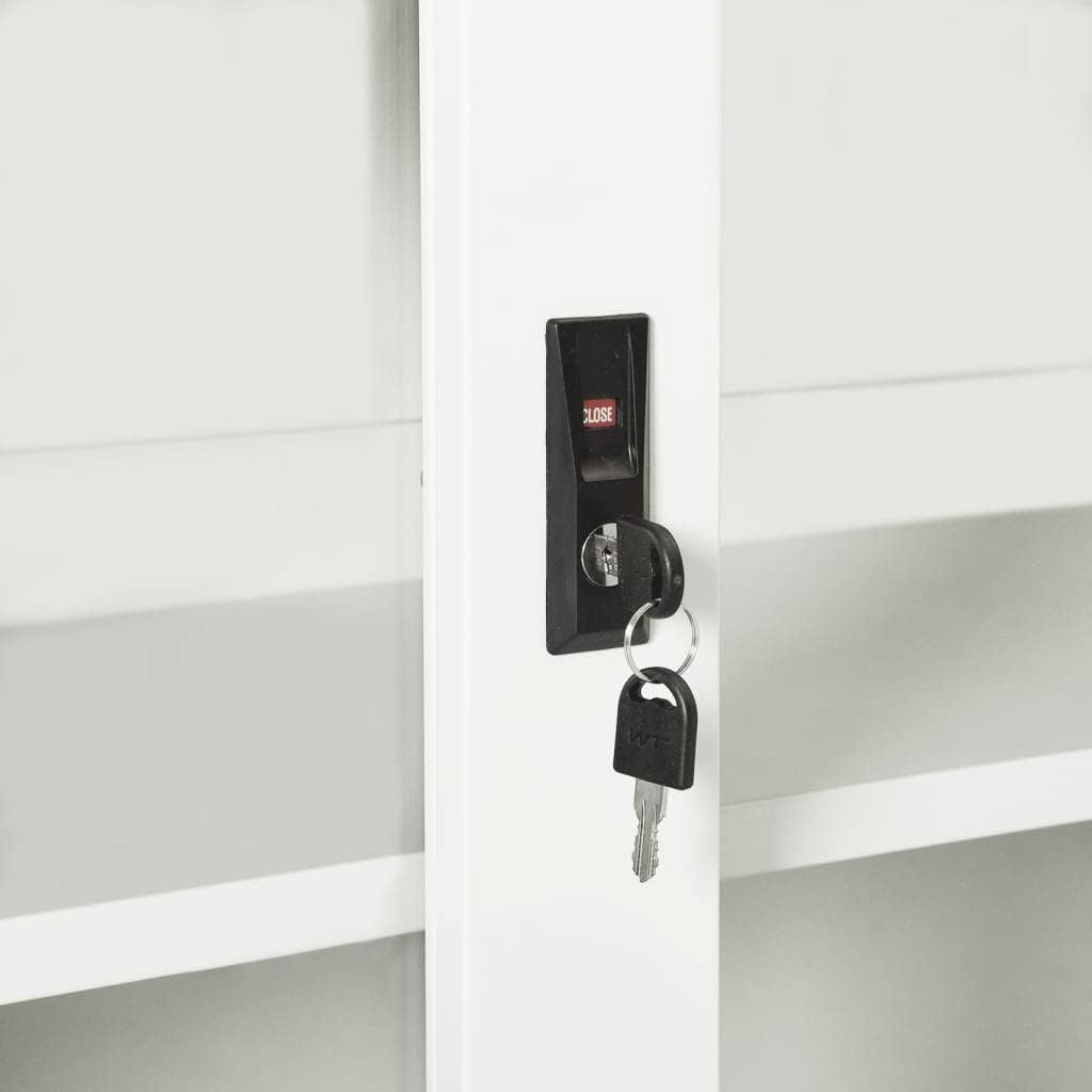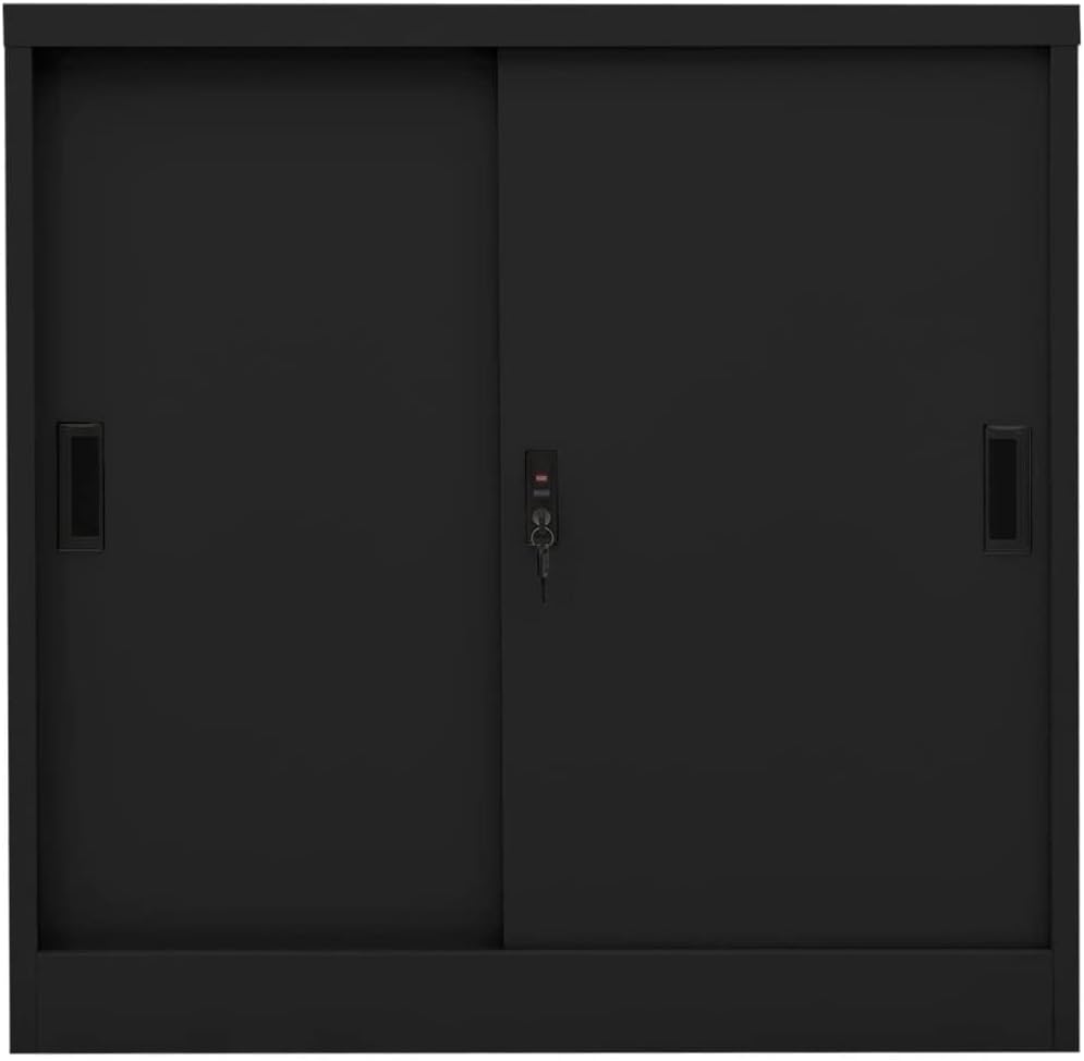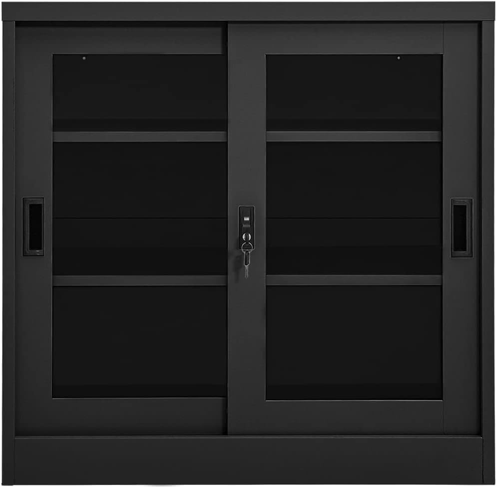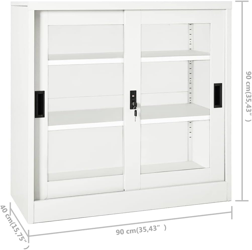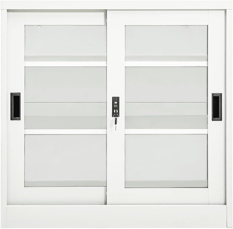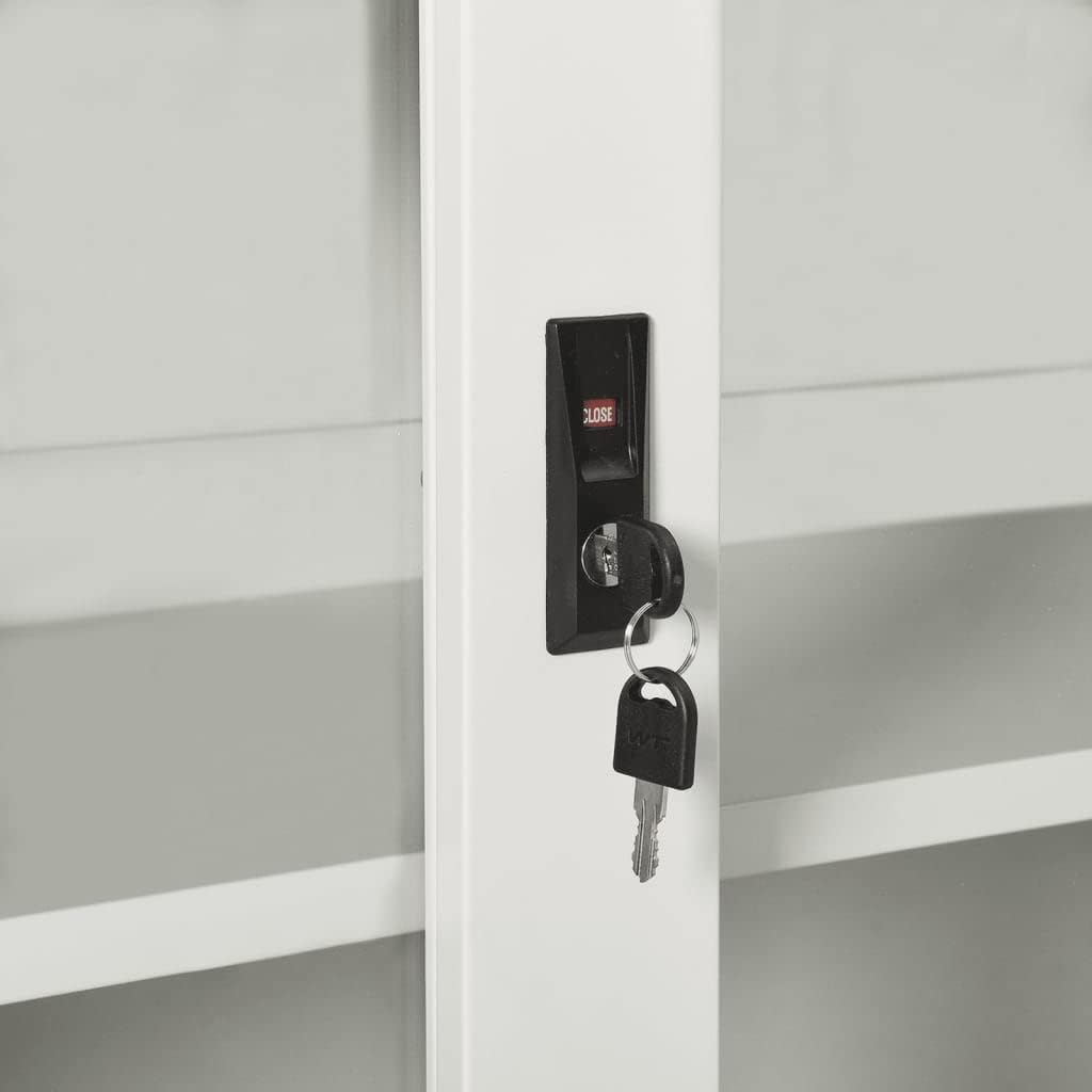This office cabinet, with a typical filing cabinet design, is ideal for file storage.With 3 adjustable shelves and a lock, this file cabinet allows you to neatly sort your files into different categories and keep files safe. It will suit any office decor thanks to its iconic design. And the distinctive tempered glass doors make it easy for you to see through and get the file you want.This office cabinet is made of steel, making it durable as well as easy to clean.This office cabinet, with a typical filing cabinet design, is ideal for file storage.With 2 adjustable shelves and a lock, this file cabinet allows you to neatly sort your files into different categories and keep files safe. It will suit any office decor thanks to its iconic design. And the distinctive tempered glass doors make it easy for you to see through and get the file you want.This office cabinet is made of steel, making it durable as well as easy to clean.Color: AnthraciteMaterial: Steel, tempered glassDimensions: 35.4" x 15.7" x 35.4" (W x D x H)With 2 doors, 2 handles and 2 adjustable shelvesIncluding 1 lock and 2 keysLoading capacity per shelf: 66.1 lbTotal loading capacity: 132.3 lbAssembly required: YesWARNING: In order to prevent overturning, this product must be used with the wall attachment device provided.
