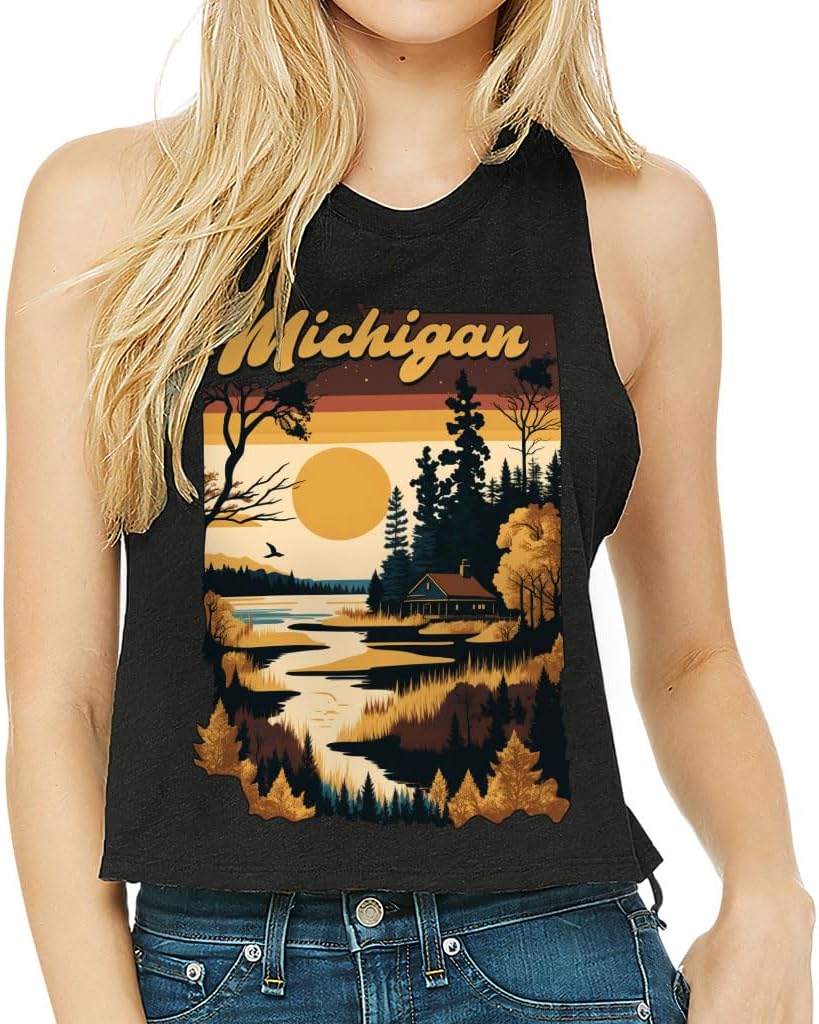 Cute and flattering Michigan Racerback Cropped Tank is suitable for most indoor or outdoor activities, such as gym, yoga, running, hiking, beach or relaxing around the house. Pair Unique Women's Tank with your favorite sports bras, especially strappy ones, and high-waisted leggings, then you will enjoy cool and comfortable exercise throughout the summer.