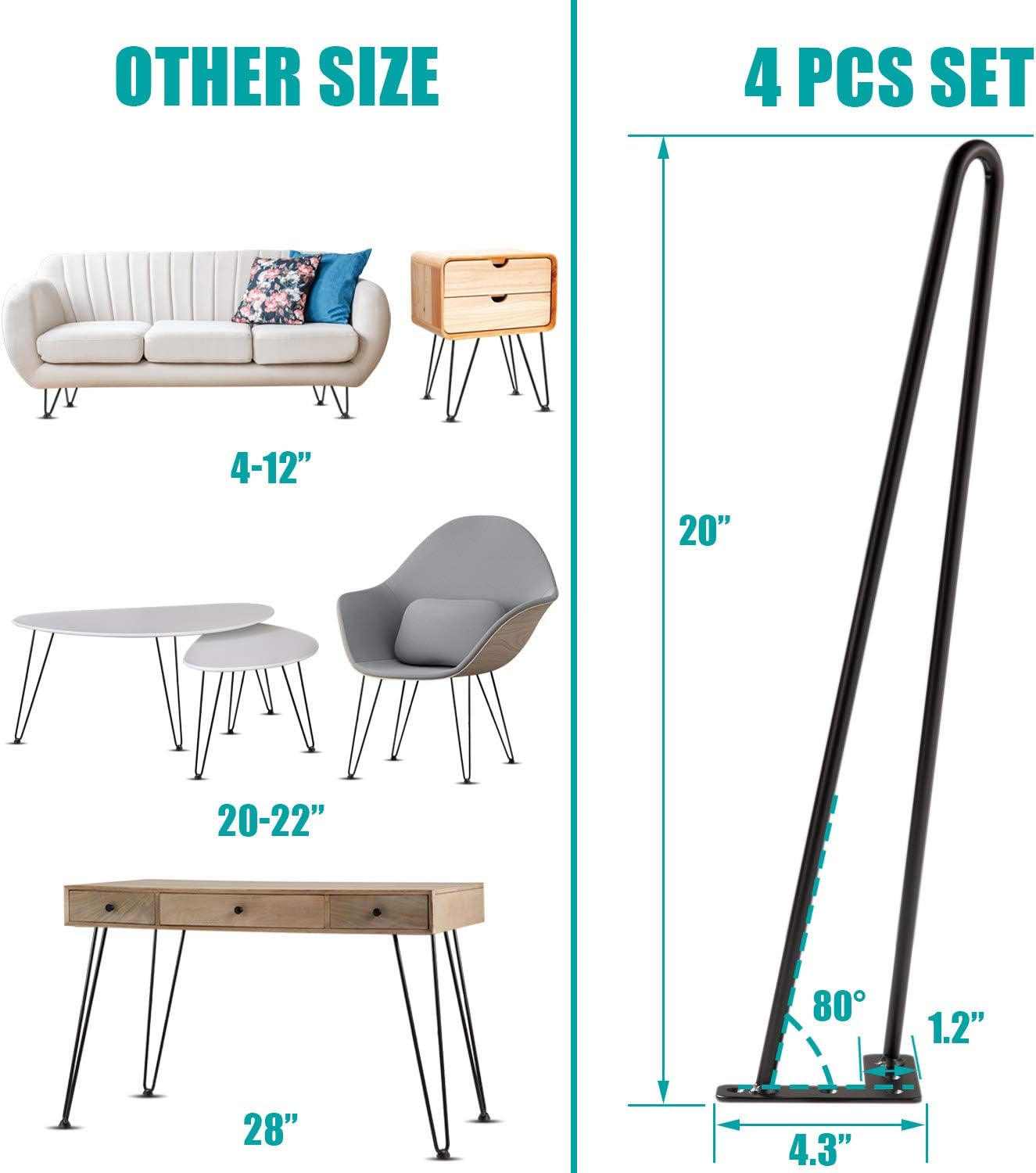 | Leg Style | Hairpin |