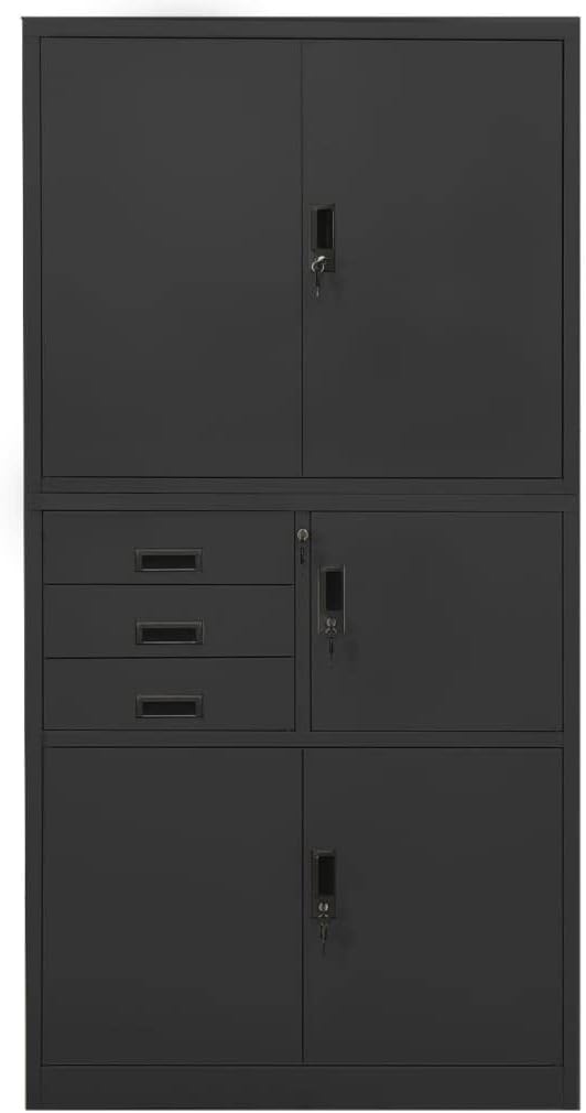 This office cabinet, with a typical filing cabinet design, is ideal for file storage.This office cabinet is made of steel, making it durable as well as easy to clean. With a locker inside and 3 adjustable shelves, this file cabinet allows you to neatly sort your files into different categories and keep files safe. Drawers with 3 sections ballbearing runners ensure smooth opening and closing, even under increased load. This cabinet will suit any office decor thanks to its iconic design.Color: WhiteMaterial: SteelDimensions: 35.4" x 15.7" x 70.9" (W x D x H)With 3 adjustable shelvesWith a locker insideWith locks3 drawers with 3 sections ballbearing runnersLoading capacity per shelf: 66.1 lbLoading capacity per drawer: 55.1 lbTotal loading capacity: 198.4 lbAssembly required: Yes