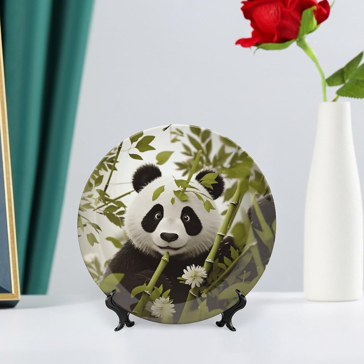 Decorative Plate for Display, Bone China Decorative Plate, Ceramic Dinner Plate with Stand, Vertical Ceramic Plate for Home Office Kitchen Table/Wall Hanging Decor