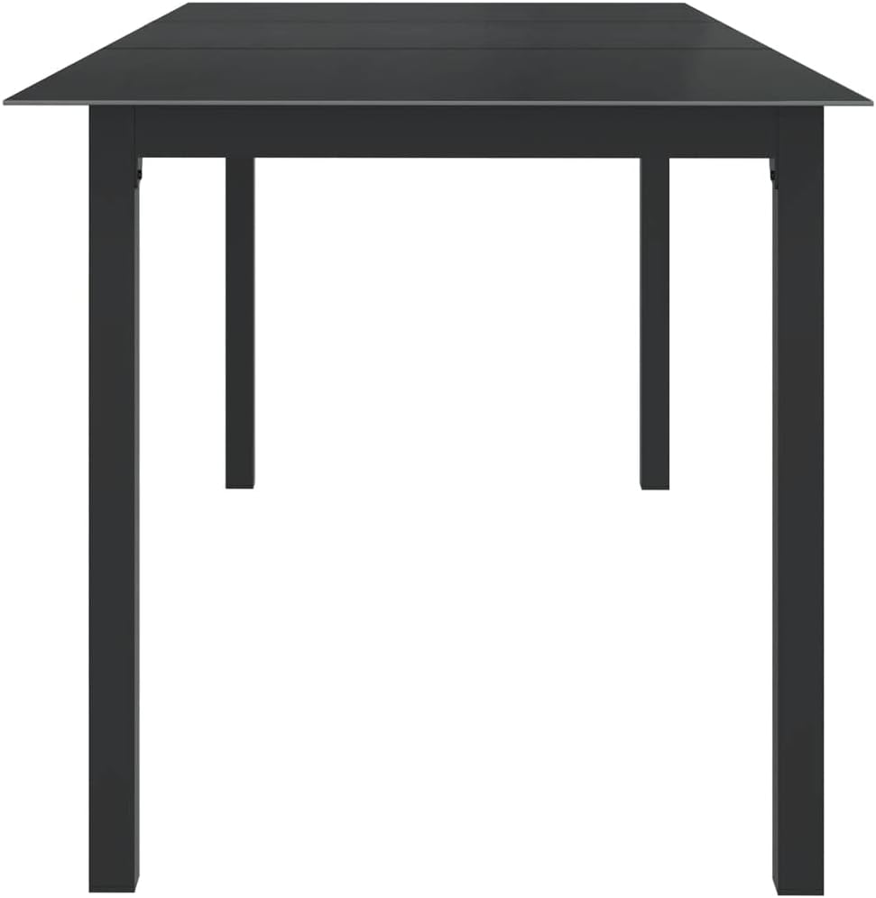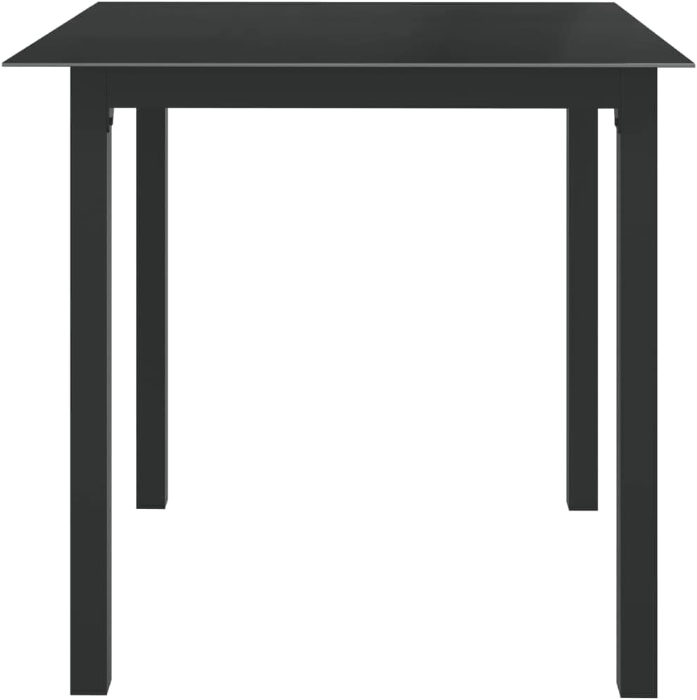 This garden table makes an excellent addition to your garden, balcony or patio with its simplistic yet stylish design.The aluminum frame makes the outdoor table strong and suitable for outdoor use. The glass tabletop is easy to clean with a damp cloth. The sturdy tabletop offers ample space for your dining accessories, utensils, food, etc.Note: In order to extend the life of your outdoor furniture, we recommend you to protect it with a waterproof cover.Color: BlackMaterial: Aluminum, glassDimensions: 59.1" x 35.4" x 29.1" (L x W x H)Glass thickness: 0.2"Assembly required: Yes