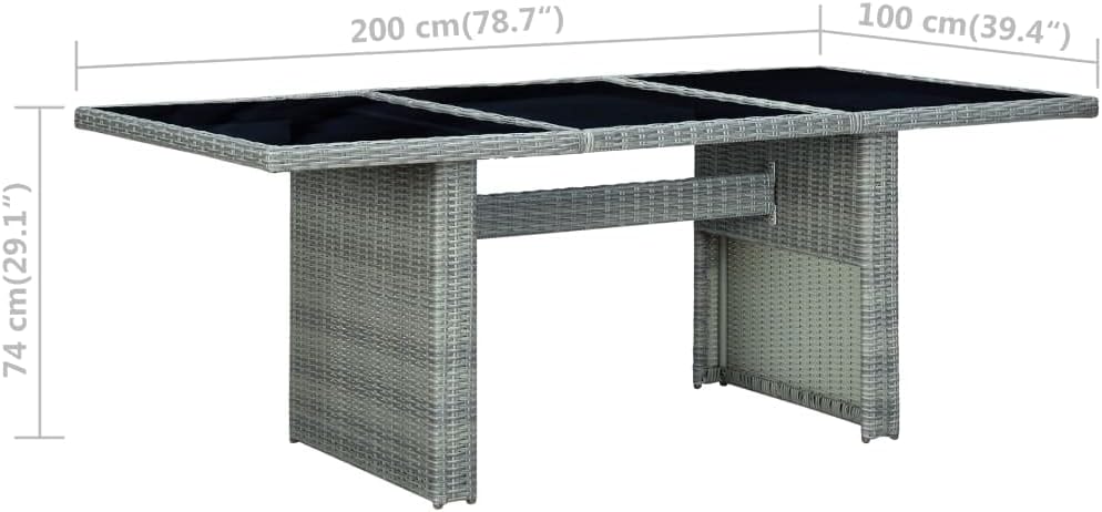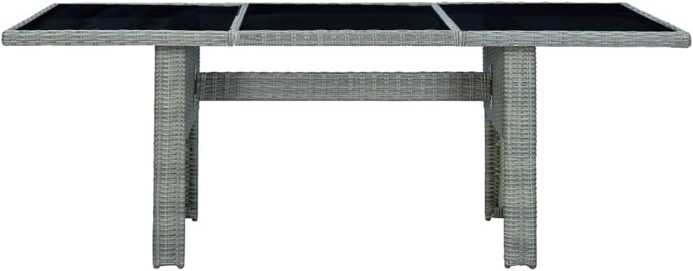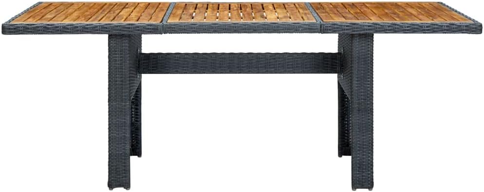This poly rattan patio table adds a touch of modern elegance to your outdoor living space with its simplistic yet stylish design.Thanks to the round PE rattan, this outdoor table is easy to clean and durable to use. The powder-coated steel frame and solid acacia wood tabletop also make the table sturdy and stable. The solid tabletop is perfect for placing or displaying your various essentials. Additionally, this dining table is easy to move with the lightweight construction.Important note: We recommend covering the table during rain, snow and frost for its best service to last.Color: Light gray and brownMaterial: Round PE (polyethylene) rattan, solid acacia wood with an oil finish, powder-coated steelDimensions: 78.7" x 39.4" x 29.1" (W x D x H)Assembly required: Yes