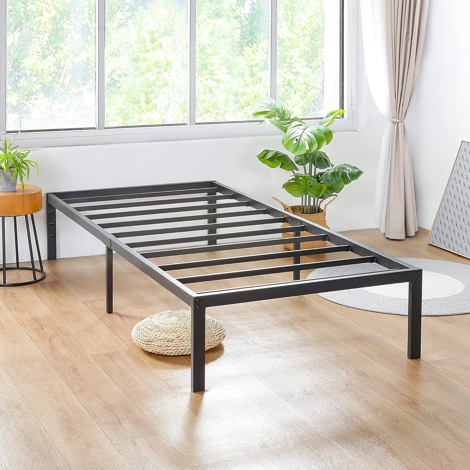PrimaSleep 14 Inch Heavy Duty Platform Steel Slat Bed Frame offers a truly simple but luxurious design. Built with high gauge steel, the frame offers a strong and reliable support structure that can withstand weight up to 700 lbs. Steel slats, featuring anti-slip, not only enhance mattress grip, but also provide air ventilation and breathability for the mattress. The reinforced frame construction comes with a heavy duty design to enhance durability and raised edges to also minimize mattress movements. With added innovation, the leg also offers space for a headboard or footboard compatibility. The heavy duty design provides a timeless appearance that remains dependable.This modern foundation provides extra under bed storage and removes the need of a box spring. High quality materials help maintain frame stability and eliminate noise, ensuring safe and quiet sleeping environment. With quality steel, modern design, and precise engineering, PrimaSleep's bed frame guarantees the best sleep quality you've ever experienced.PrimaSleep's vision is to elevate sleep experience by incorporating proprietary technologies and innovative solutions that boast exceptional quality and offer unique features.Package Includes- 1 x Bed Frame- 1 x Assembly Instructions- 1 x Hardware Kit (bolts, nuts, and wrenches)Product comes with a 5-year Manufacturer Warranty.