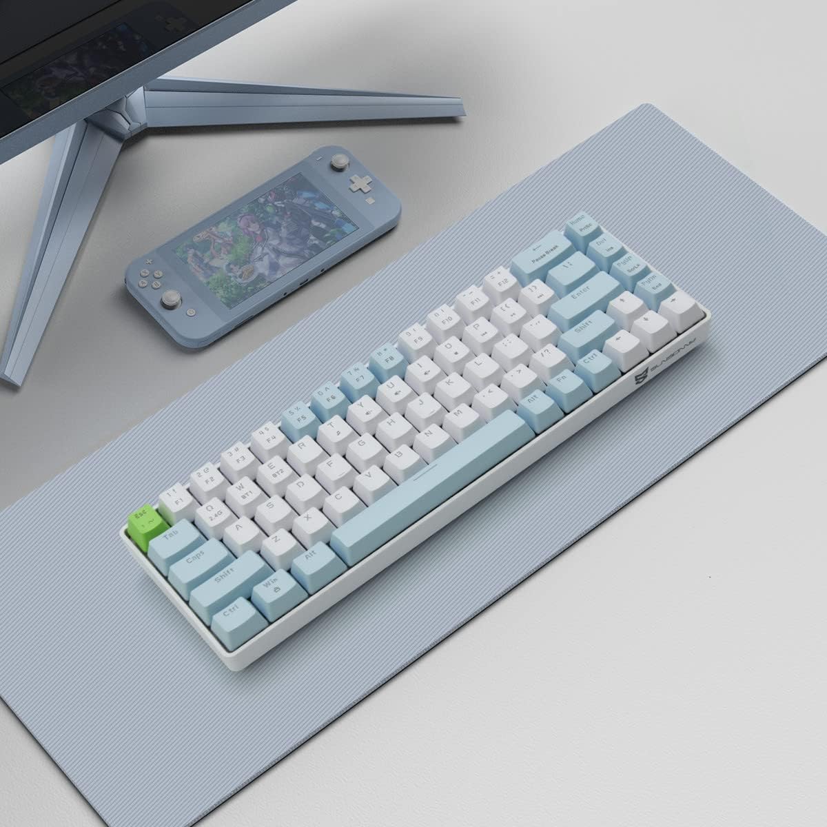 Features: mini and portable design, unique 68 keys US layout Mechanical black switch, 6 keys roll-over anti-ghosting Keyboard size is 13.19"*3.93"*1.46"Color: White silver Linear Action Personalized design, without borders floating key and keyboard and line separation, convenient affirmative What's included: 1 x Mini 68keys keyboard 1 x USB Cable