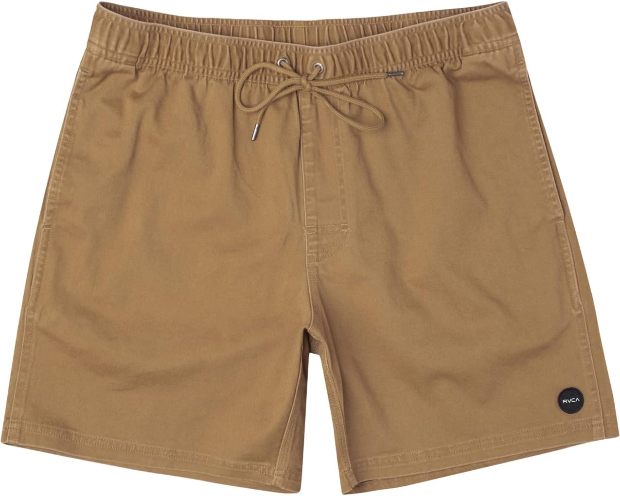 Stretchy, enzyme-washed shorts with an elastic waist, faux fly, side seam pockets, and RVCA-branded back patch pocket. Relaxed 17" outseam and regular fit.