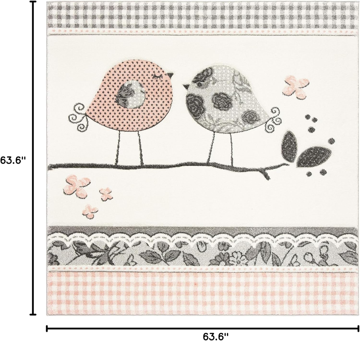 | Model Name | SAFAVIEH Carousel Kids Collection CRK153P Birds Non-Shedding Playroom Nursery Bedroom Area Rug 6'7" x 6'7" Round Pink/Ivory |