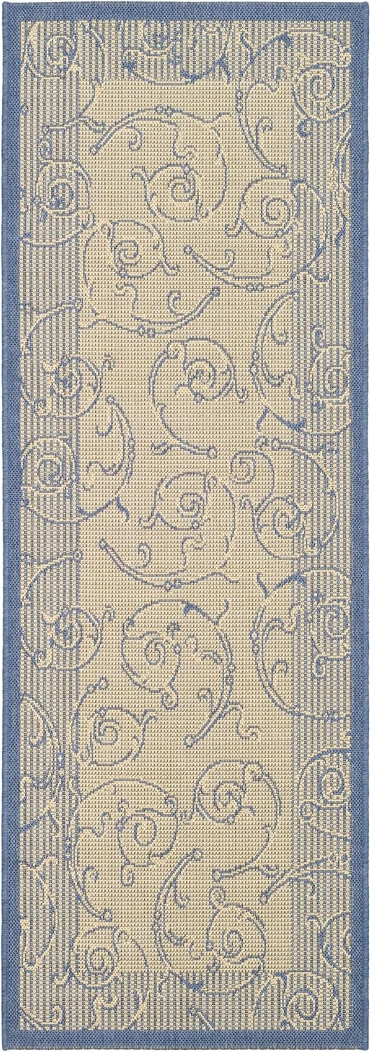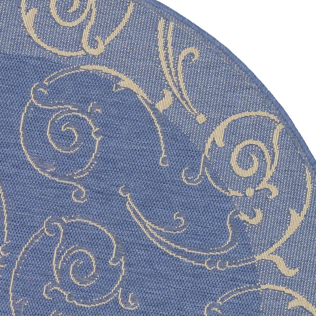 Safavieh's Courtyard Collection is inspired by timeless designs crafted with the softest polypropylene available. This rug is crafted using a power-loomed construction and features a main accent color of blue. Perfect for any backyard, patio, deck or poolside, this rug will instantly turn your outdoor area into a resort-style entertaining space. Finely crafted for seasons in the sun and years of open-air gatherings, the Courtyard rug instantly elevates any interior or exterior décor to a space of visual inspiration. More than a decorative enhancement, this rug is both and -ant to ensure carefree maintenance. With its style, practicality, and transitional decorating options, this rug extends an open invitation to gather and may just spark impromptu parties. Primary Color: BluePile Height: 0.25 inches Material: Polypropylene Style: Contemporary Construction: Power-loomed Rug Type: Indoor/Outdoor Feature: Latex Free Rug Dimensions: 2' x 3'7"