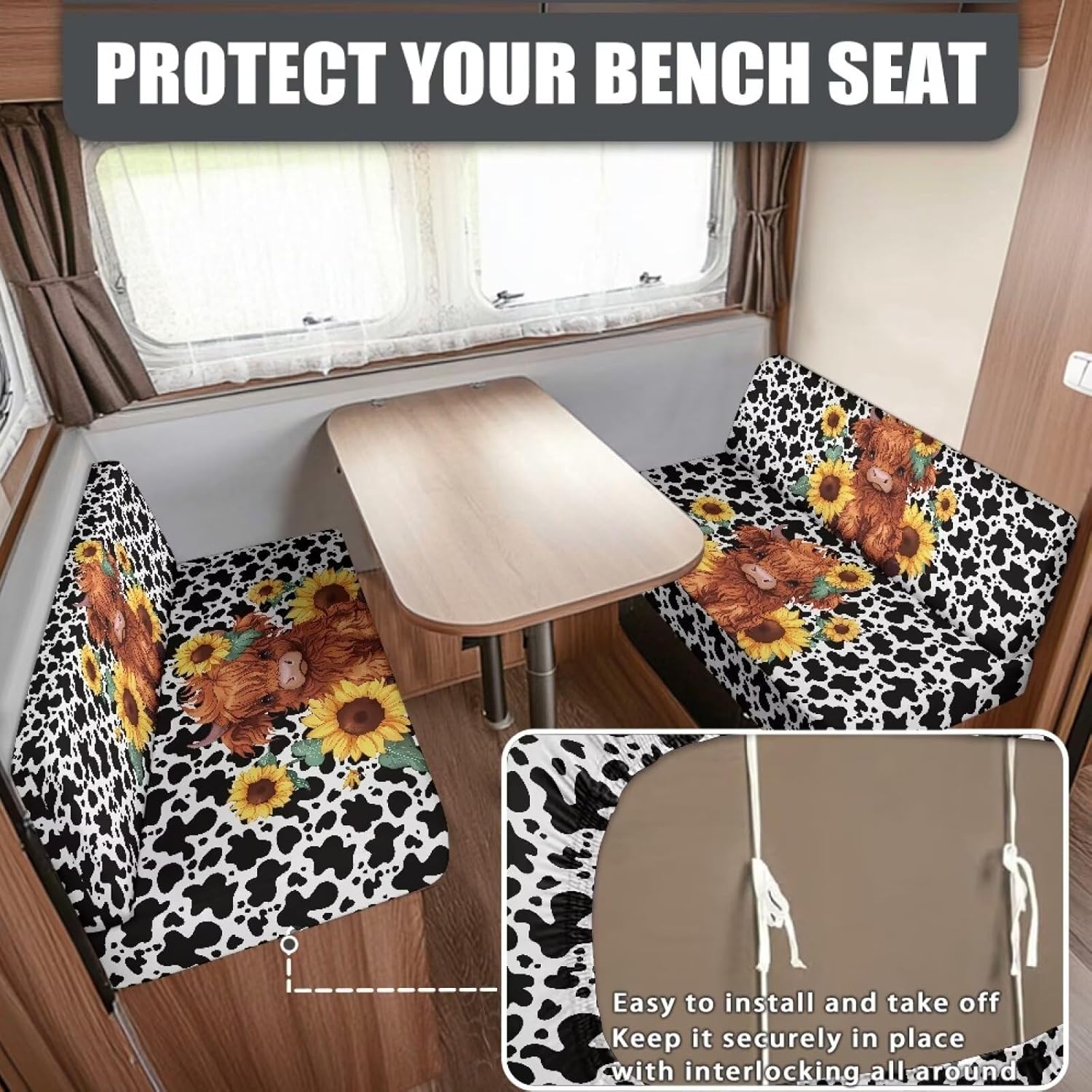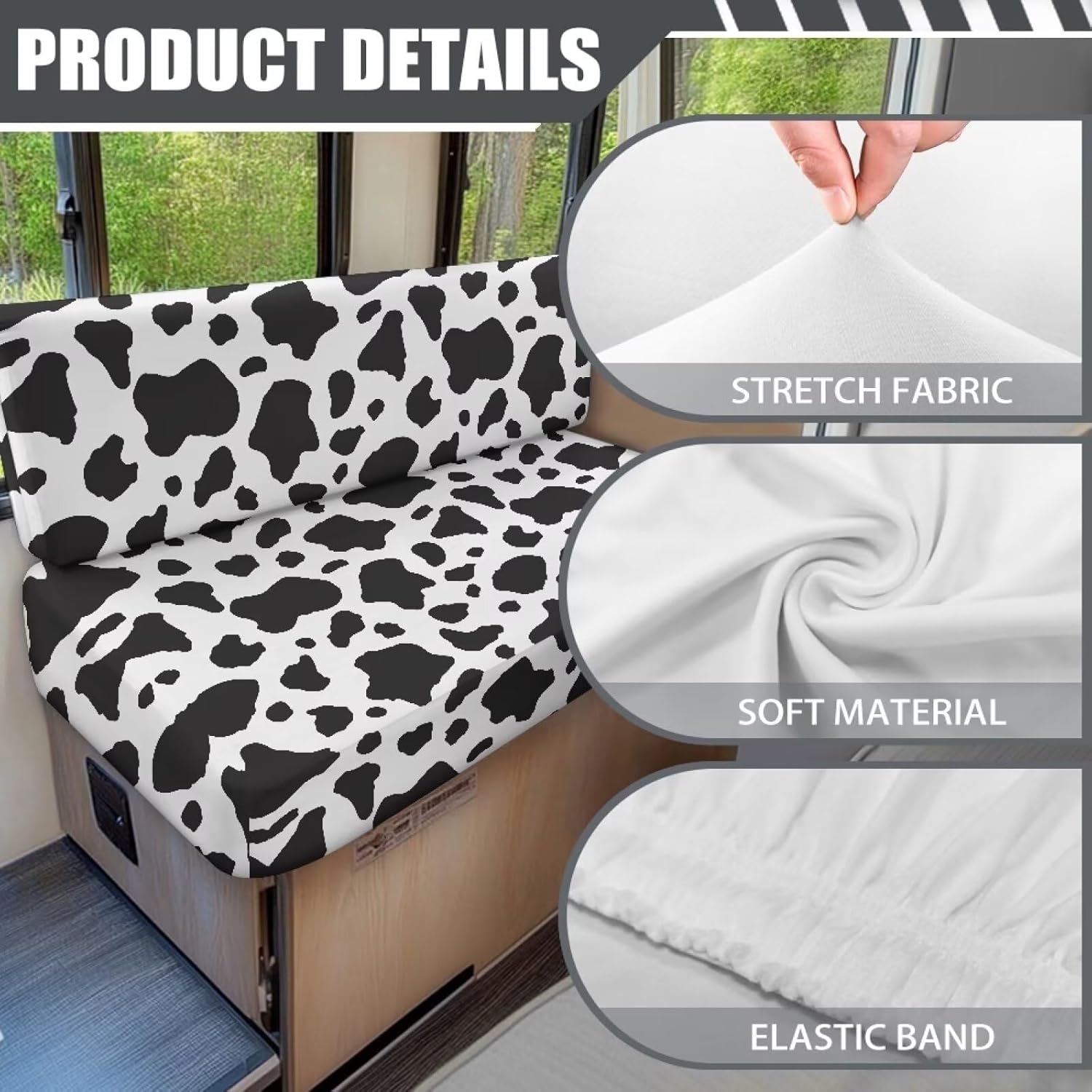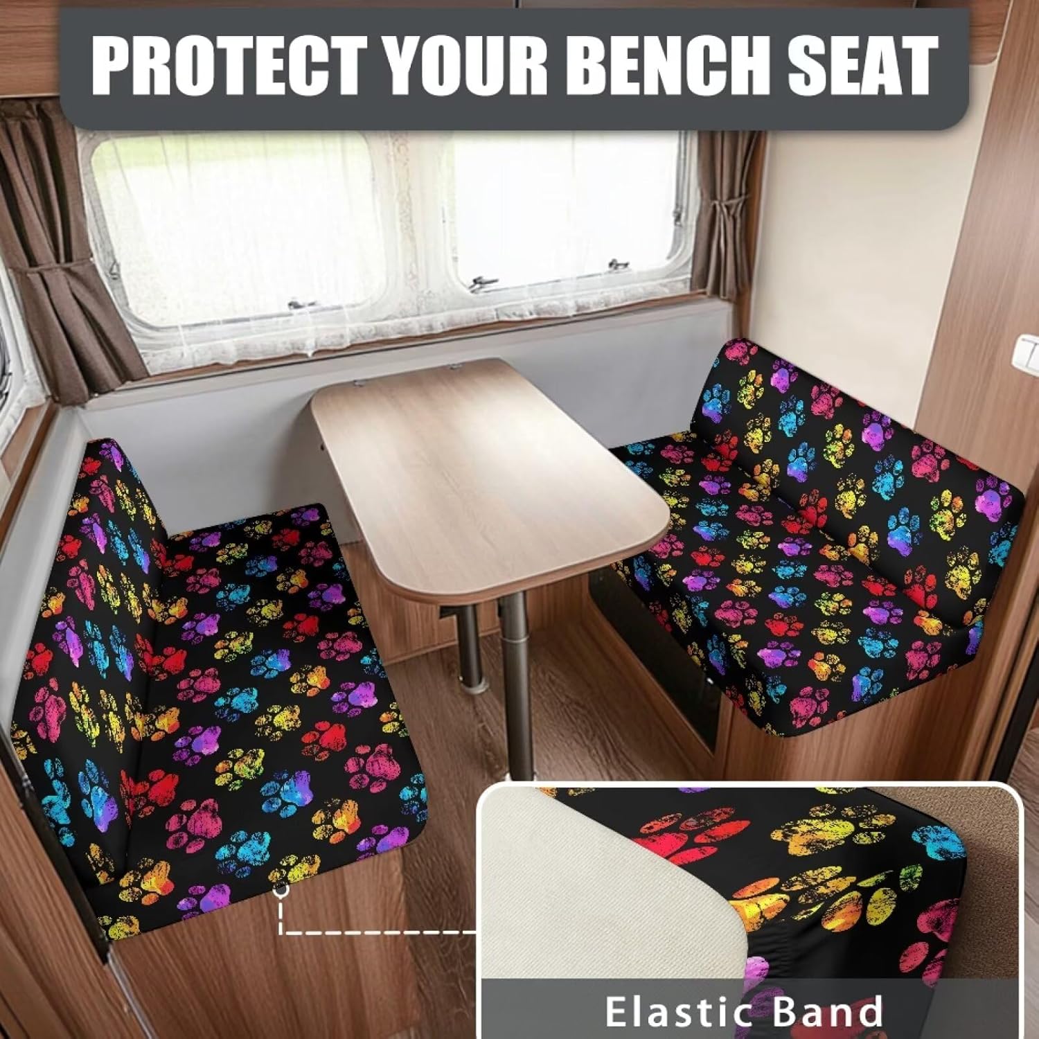 Specification Size : Please check our size chart before ordering Material: Polyester+Spandex Package: Two piece Feature This rv dinette cushion covers is made of polyester and spandex. Durable, wrinkle-resistant, anti-pilling, no need to worry about deformation after long-term use. Stretchy and strong enough to fit most the size of rv dinette cushions perfectly. Includes: 1x Bench cover and 1 x Backrest cover. Replacement camper cushions cover can fully protect your sofa cushion from everyday damage, such as accidental splashes, scratches, spills, and pet hair. Great choice for families with children and pets. Dress up your furniture with our cover to add aesthetic and vibrant sense for your RV Dinette Car Washing Instructions It is recommended to wash by hand and wash with cold water. Do not soak for a long time, do not bleach, and do not exposed to sunlight for a long time Notes We are committed to providing you with high quality products and excellent service. If you have any questions or need further information, please feel free to contact us