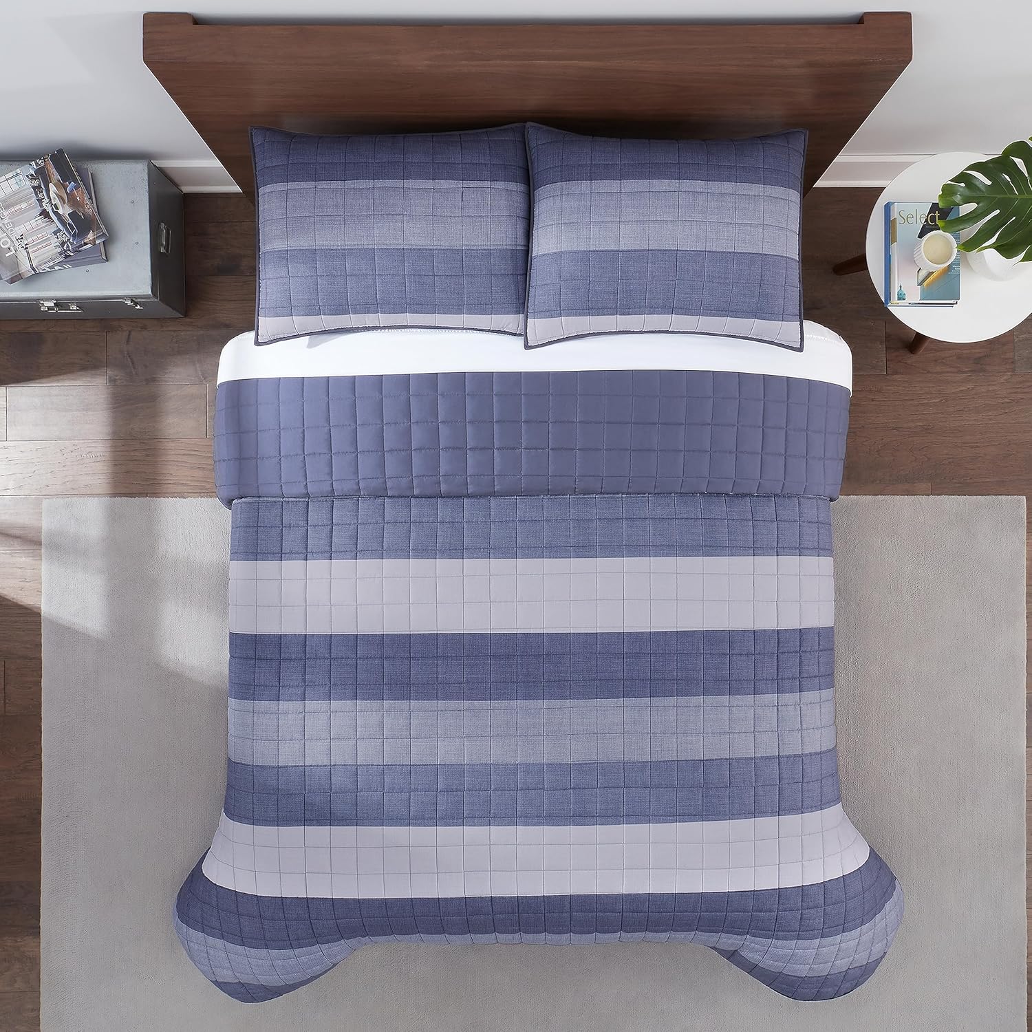 Stay comfortable in style with the Serta Simply Comfort Billy Textured Stripe 3-Piece Printed Quilt Set. This quilt set features a handsome textured stripe print in multiple colors along the horizontal of the quilt.