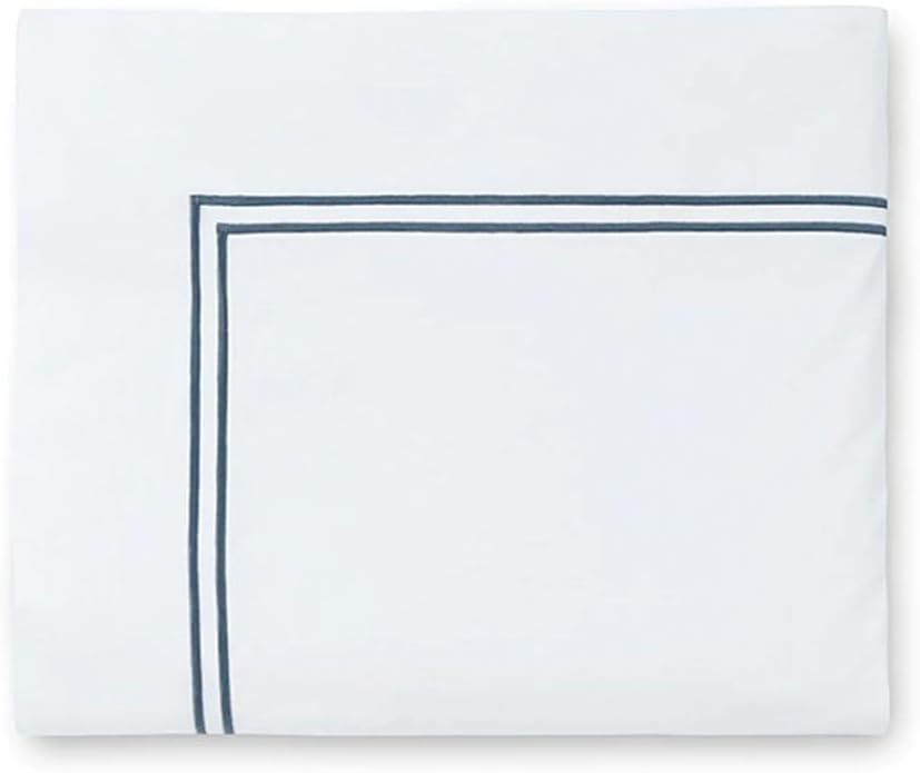 Country of Origin:ItalyFiber:100% Long-staple CottonFabrication:Percale with double row of satin stitch embroidery:Duvet Cover: U-Shape on top of bedShams: 4-sidesFlat Sheet and Pillowcases: Along return and cuffFinishing:Knife-edge hem on Duvet CoversClassic-style flanges, approximate measurements:Shams: 3-inches; Boudoir: 2-inchesFlat Sheet and Pillowcase cuffs: 4-inchesHem:Plain