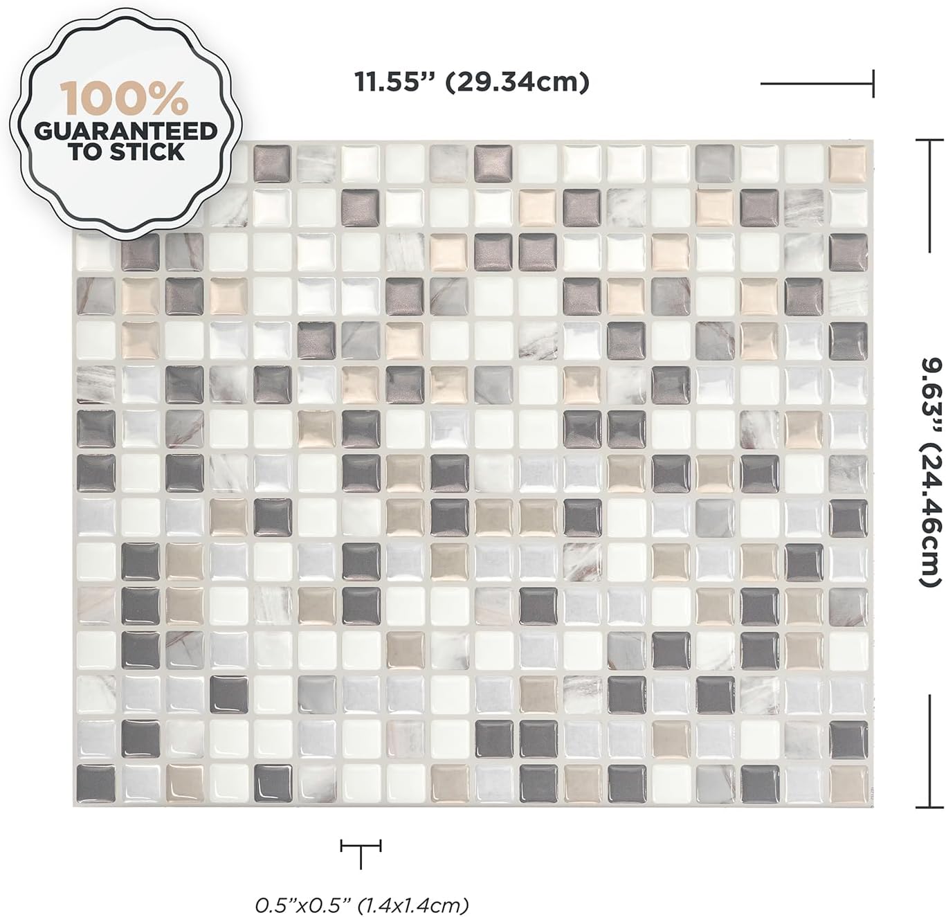 SMART TILES Peel and Stick Backsplash - 5 Sheets of 9.63" x 11.56" - 3D Adhesive Peel and Stick Tile Backsplash for Kitchen, Bathroom, Wall Tile