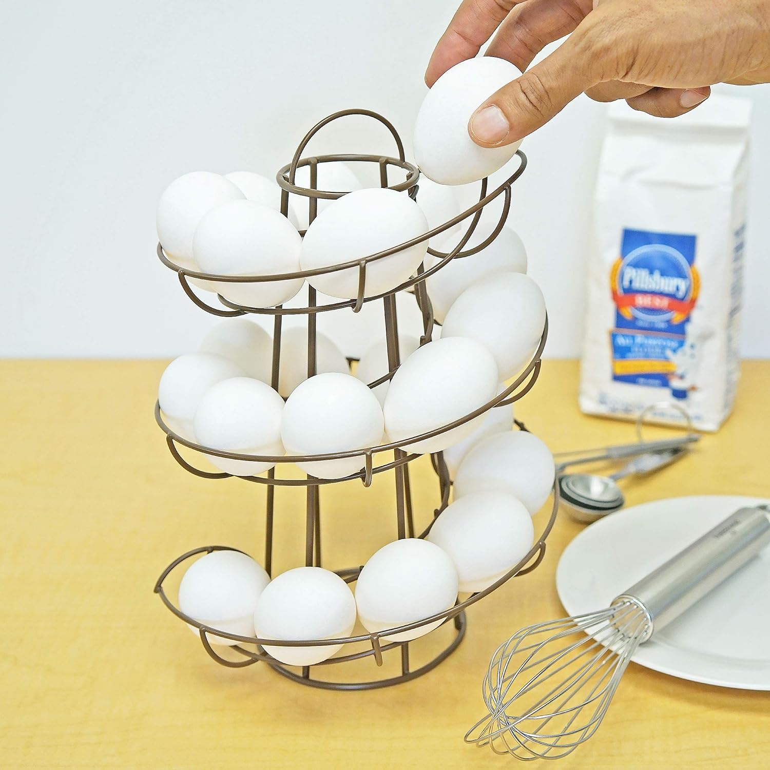 This excellent egg holder from Southern Homewares is a must-have for anyone who collects eggs from their chickens! This sleek and modern rack acts as both a storage solution and a visual element to a countertop. Egg Skelter makes it easy to track which eggs are the oldest and newest from your Hens. Simply place an egg into the rack and line them all up in the Skelter! Remember to always take eggs from the bottom and it will ensure the oldest eggs get used first! Holds up to 24 eggs (Capacity varies based on size of your eggs). Color is Black. Egg Trough is 1. 90” in width. Overall dimensions: 7. 50” x 7. 50” x 10. 63” note: due to the oval shape of eggs, you may find that the eggs will not naturally roll on their own after removing an egg and will require a gentle nudge.