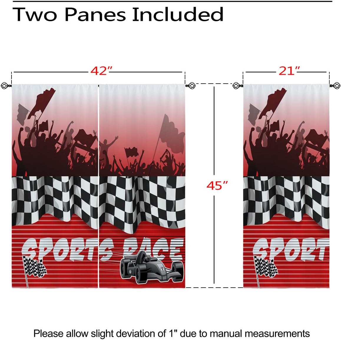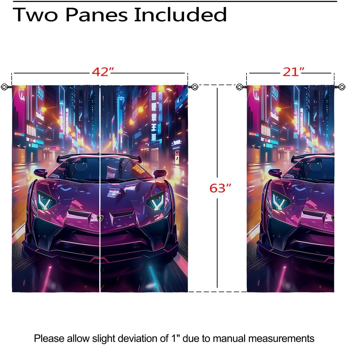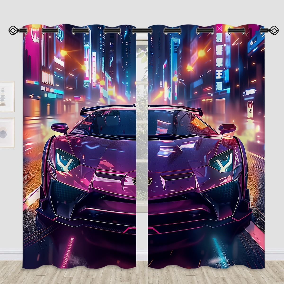 These print curtains are perfect for Living room, bedroom, kids room, kitchen, yard, patio, parlor, sliding door with Sports car,Racing Car Extreme Sports Race Game 3d Competition pattern.- Unique design:· Save energy costs by insulating against heat and cold.· Reduce noises from busy streets and high-traffic areas.· Protect furniture from sun damage and fading.· Provides complete privacy when needed· Perfect for any bedroom, office kids room and living room.- Package Included:· Blackout window curtains 2 Pcs set ( two panels).- Material:· Our Blackout Curtain Liners are crafted from a durable soft and thick triple weaved blackout fabric which can block out sunlight and UV rays. The darker color of the fabric, the more light it can block.- Easy Care Instructions:· Machine washable in cold water· Do not bleach.· tumble dry on low· low temperature ironing- Notes:· For your curtains to be more perfect, please choose a size 5-10 Inch larger than the actual window width.· here may be slight differences in colors on different displays. If you have any questions about the product, please feel free to contact us.