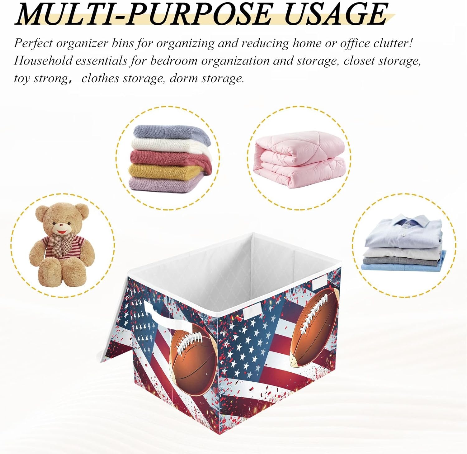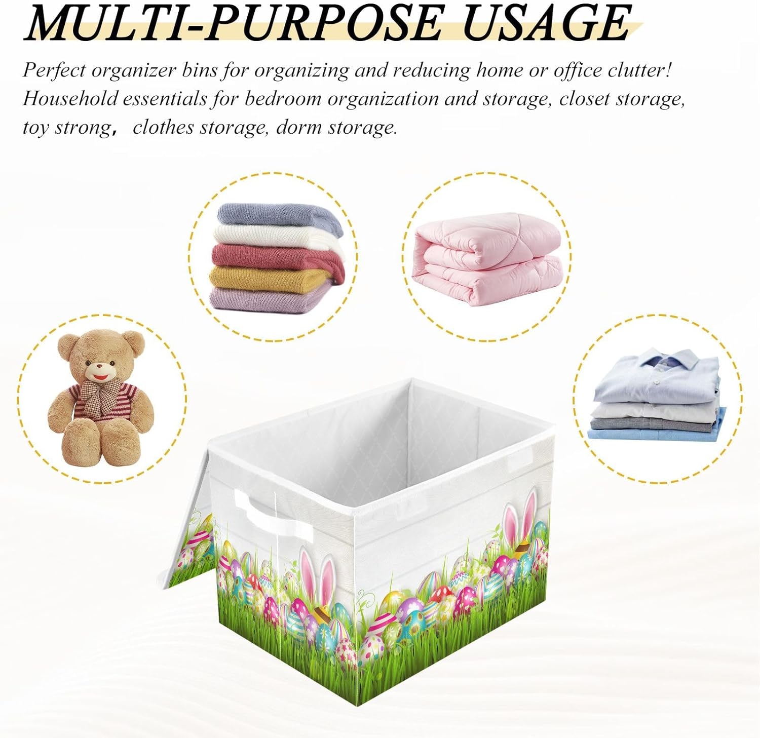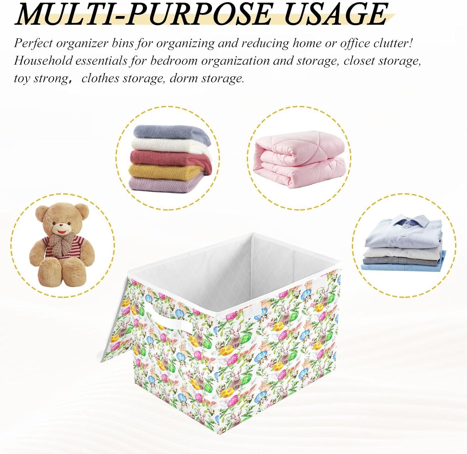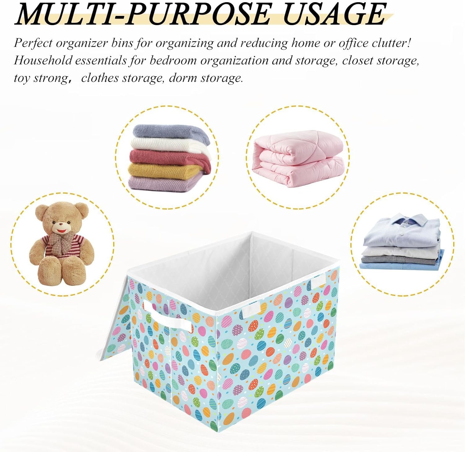 This storage bins with lids is useful for your daily life. Not only suitable for adult, but also suitable for home kitchen and office. Why choose our large foldable organizer box? - Large capacity, can store more stuff. - Sturdy side handles for easy toting. - Collapsible design for convenient storage. - Modern stylish,cute pattern design. - Storage basket with cover design to prevent dust from dust. - Multi-purpose, suitable for any place. Features: - Perfect for kitchen, office, bedroom, living room, rest room, closets and cabinets. It's an excellent choice for keeping your space nice, tidy and organized. -If you have any questions or issues regarding the storage boxes, please do not hesitate to send the seller a message through Amazon we will respond within 24 hours. THIS ITEM IS NOT INTENDED FOR USE BY CHILDREN 12 AND UNDER.
